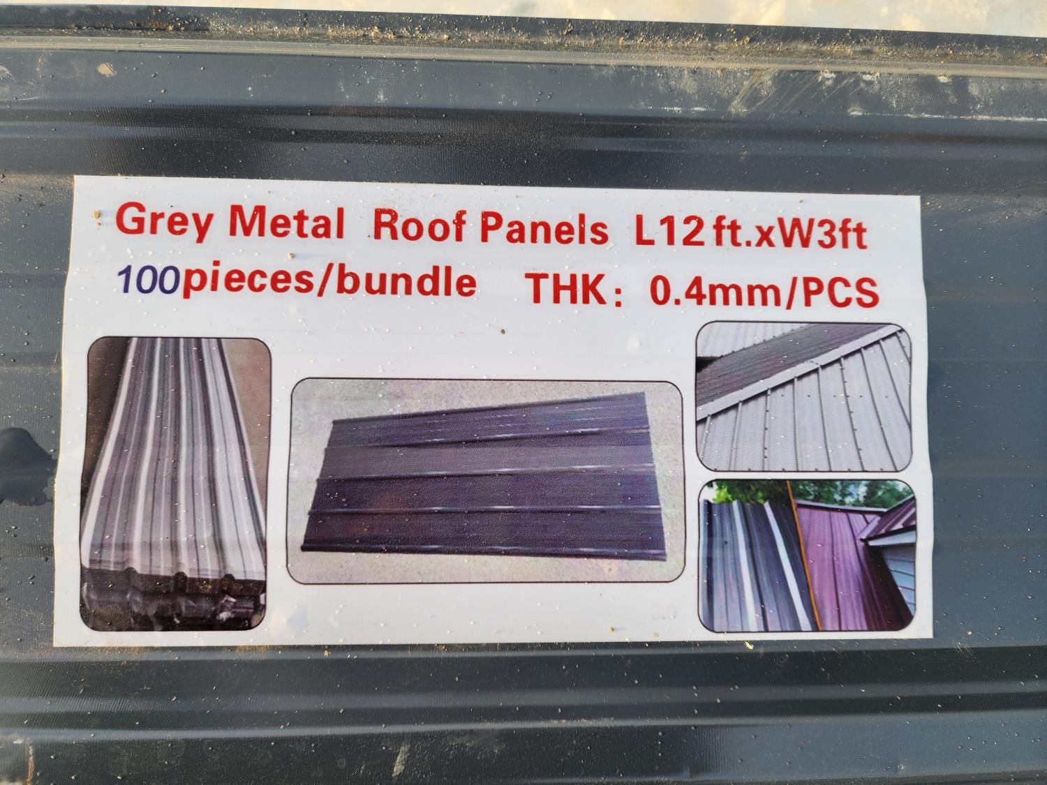 3039 (100) 12 Ft Grey Metal Roofing Panels (Unused)