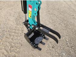 Open station, gas engine, 15 inch dig bucket, manual thumb, backfill blade, 7 inch rubber tracks
