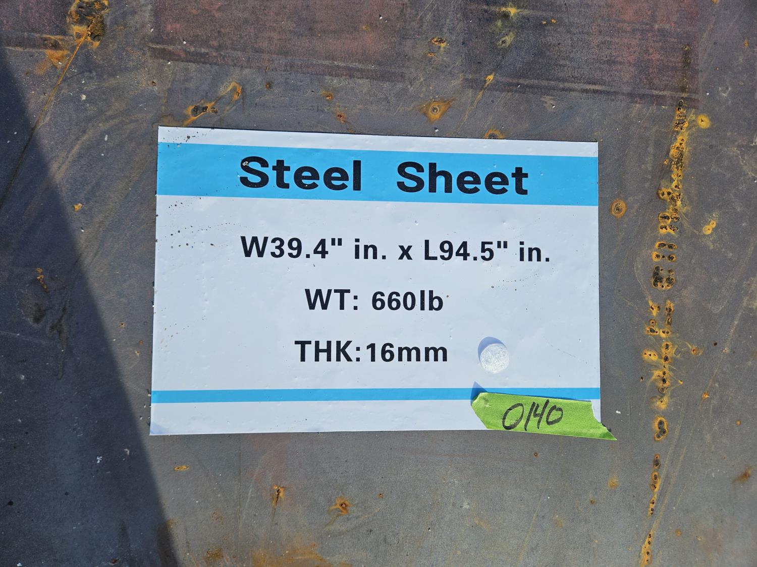 3082 39.4 Inch X 94.5 Inch Steel Plate (Unused)