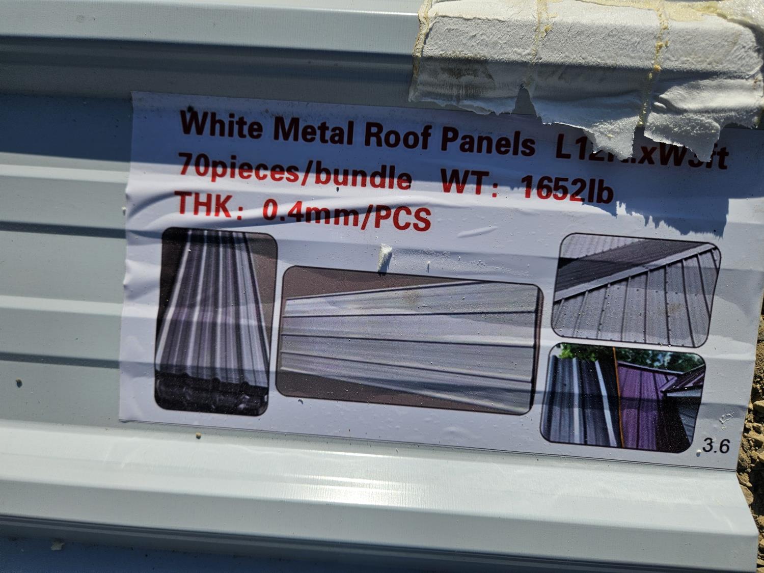 3040 (70) 12 Ft White Metal Roof Panels (Unused)
