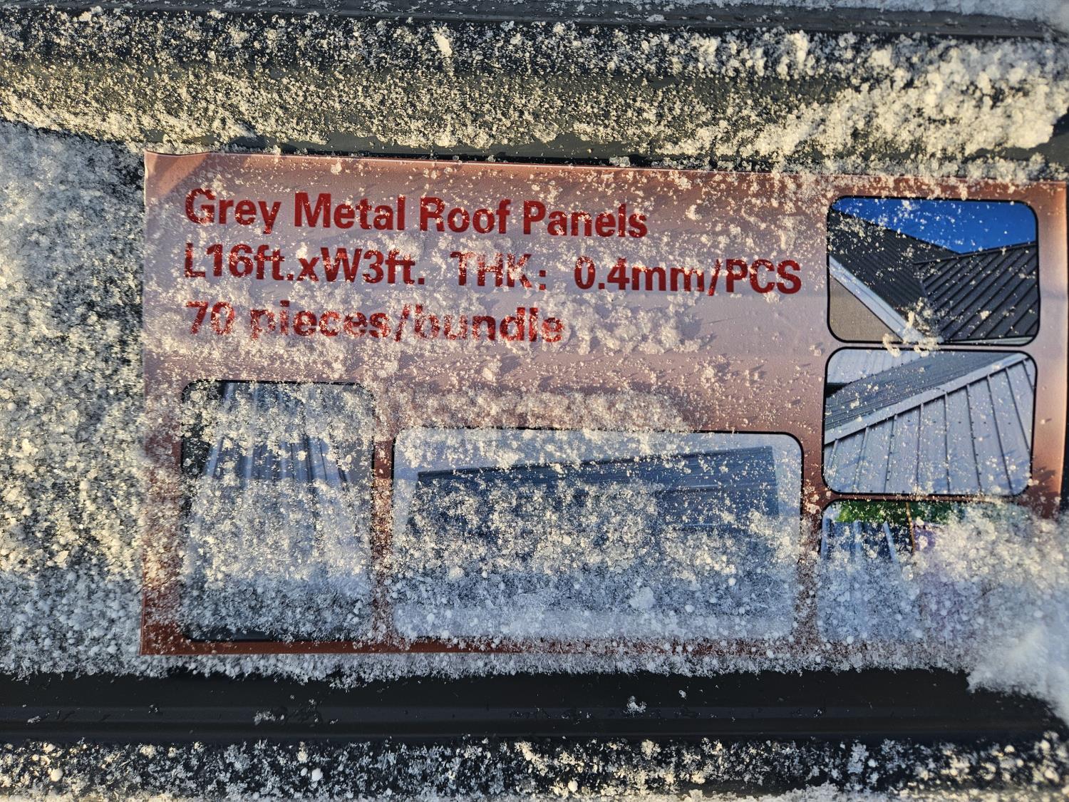 3069 (70) 16 Ft Grey Metal Roofing Panels (Unused)