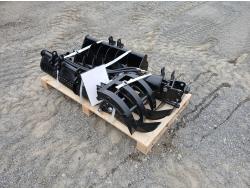 8 inch bucket, 20 inch rock bucket, 32 inch bucket, Q/C, ripper, rake, grapple, 8 inch auger, 12 inch auger