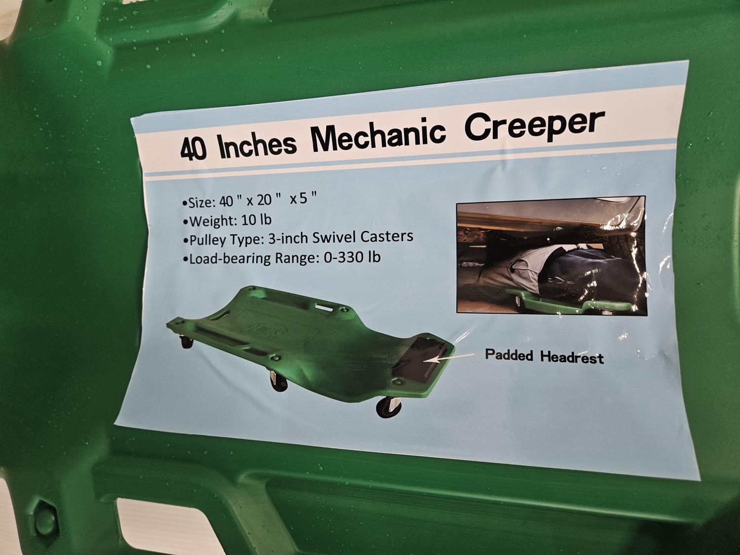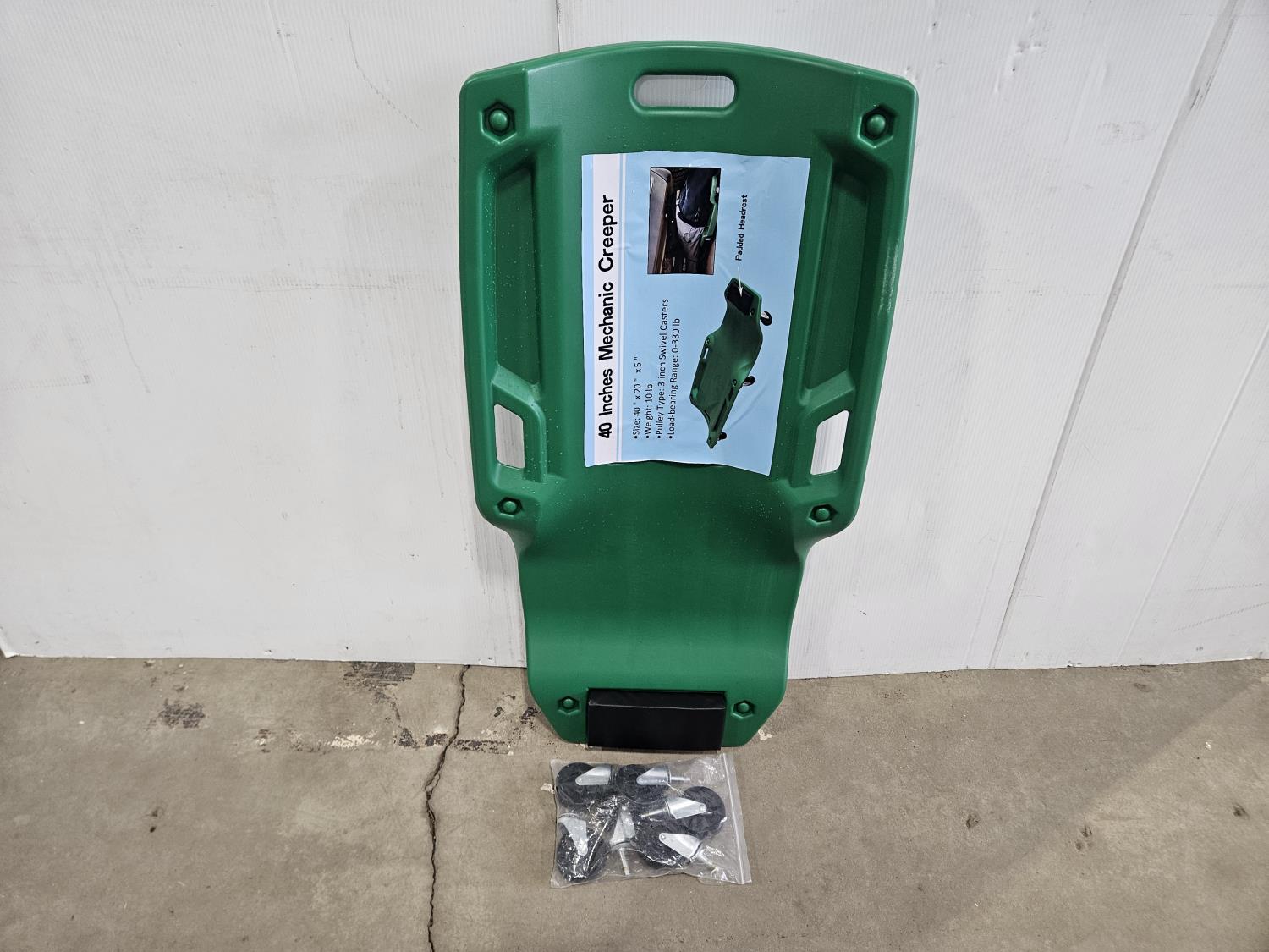 40 inch x 20 inch x 5 inch, 3 inch swivel casters, [added headrest