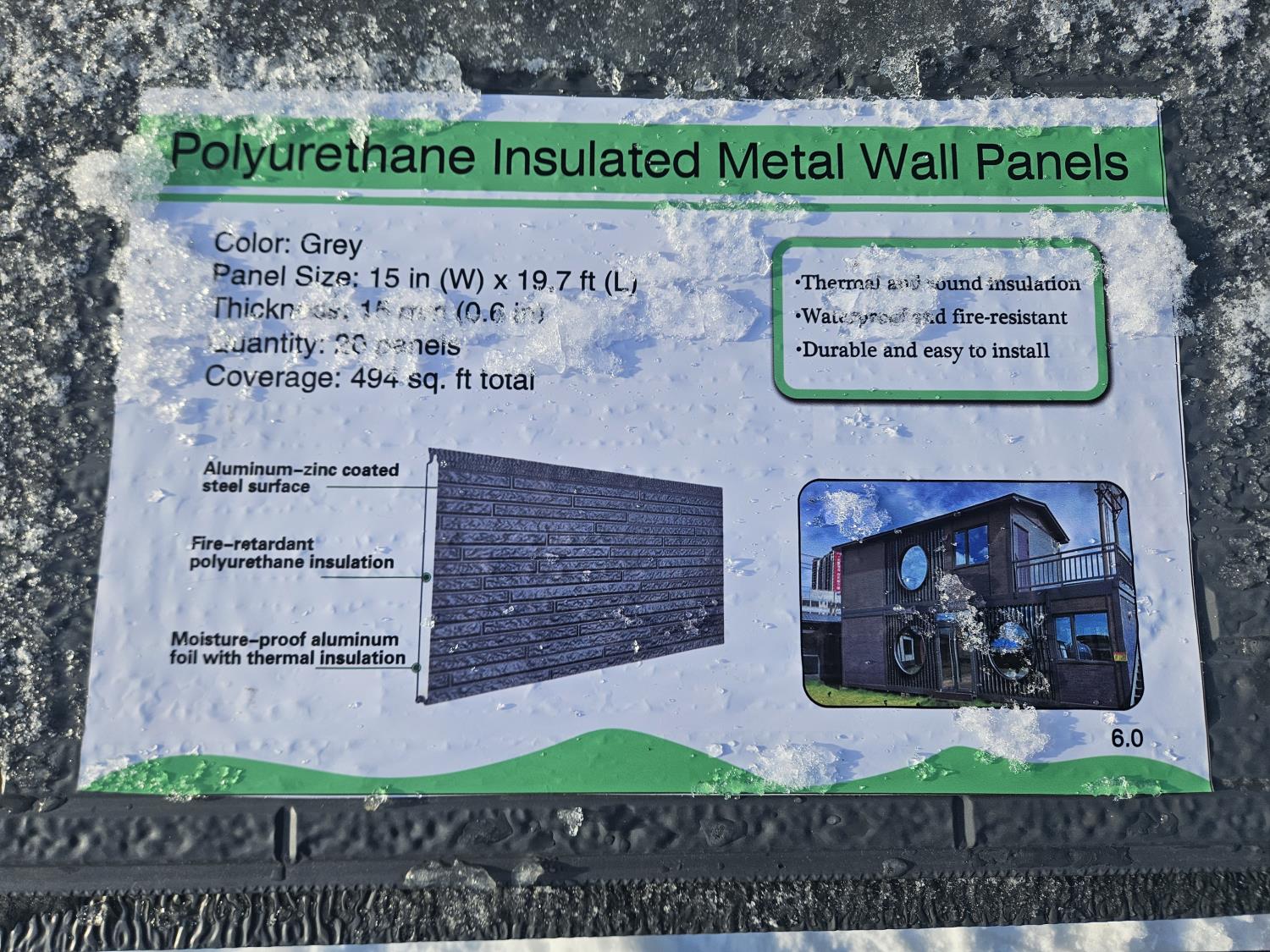 grey color, 15 inch x 19.7 ft x 0.6 inch thick, 20 panels appx 494 sqft