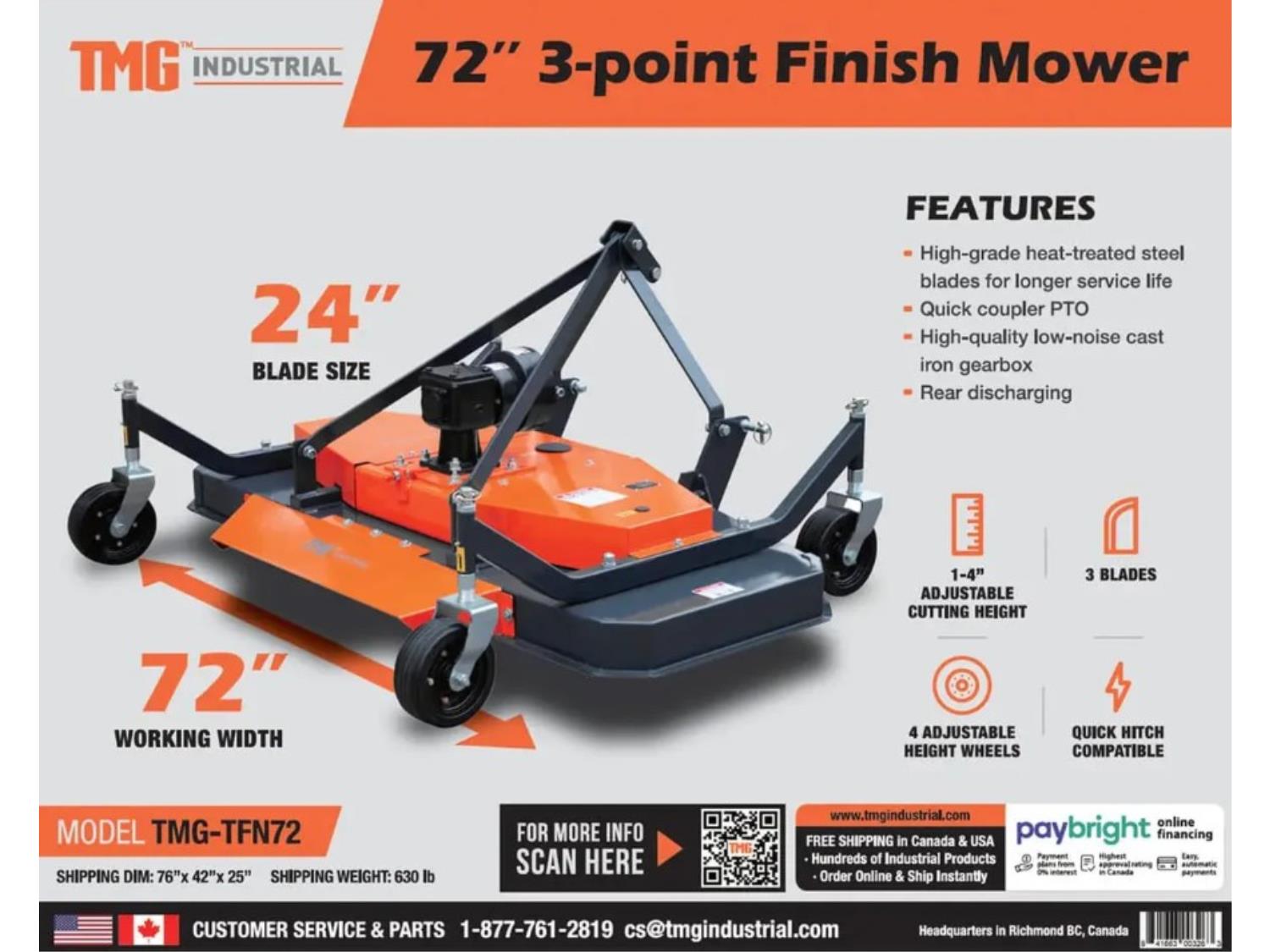 3222 StanForge 72 Inch 3 Pth Finishing Mower (Unused)