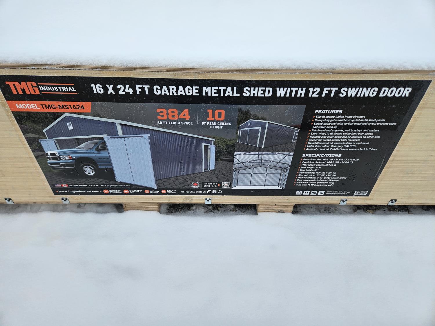 3004 StanForge MS1624 16 Ft X 24 Ft Metal Garage Shed with Double Front Doors (Unused)