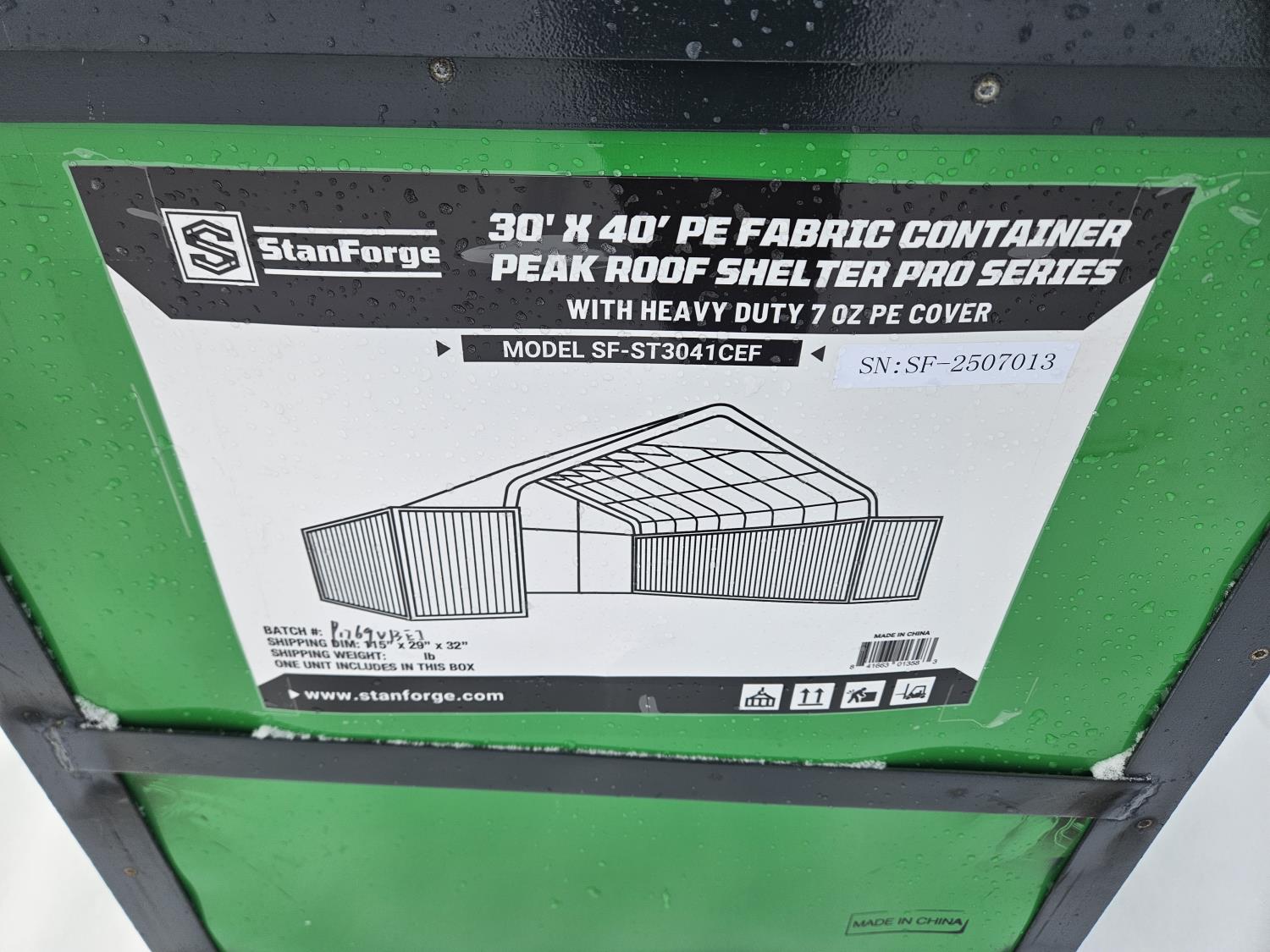 3007 StanForge ST3041CEF 30 Ft X 40 Ft PVC Fabric Container Peak Roof Shelter (Unused)