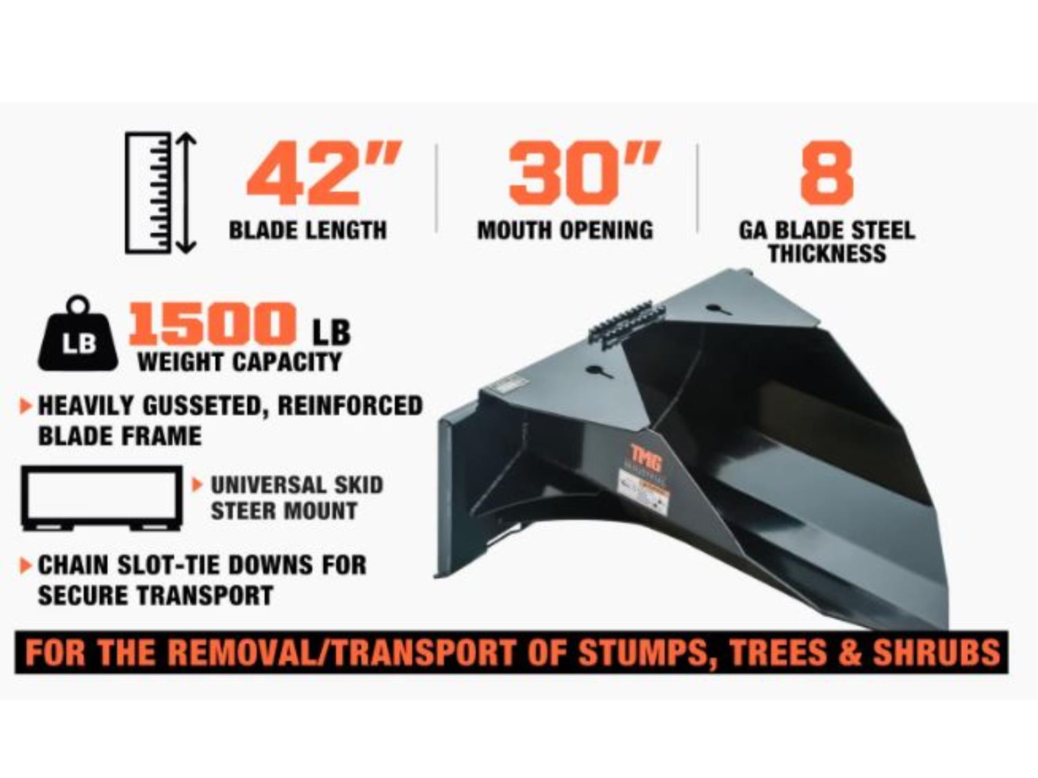 1500 lb capacity, chain slot, 30 inch mouth opening, high abrasive cutting edge
