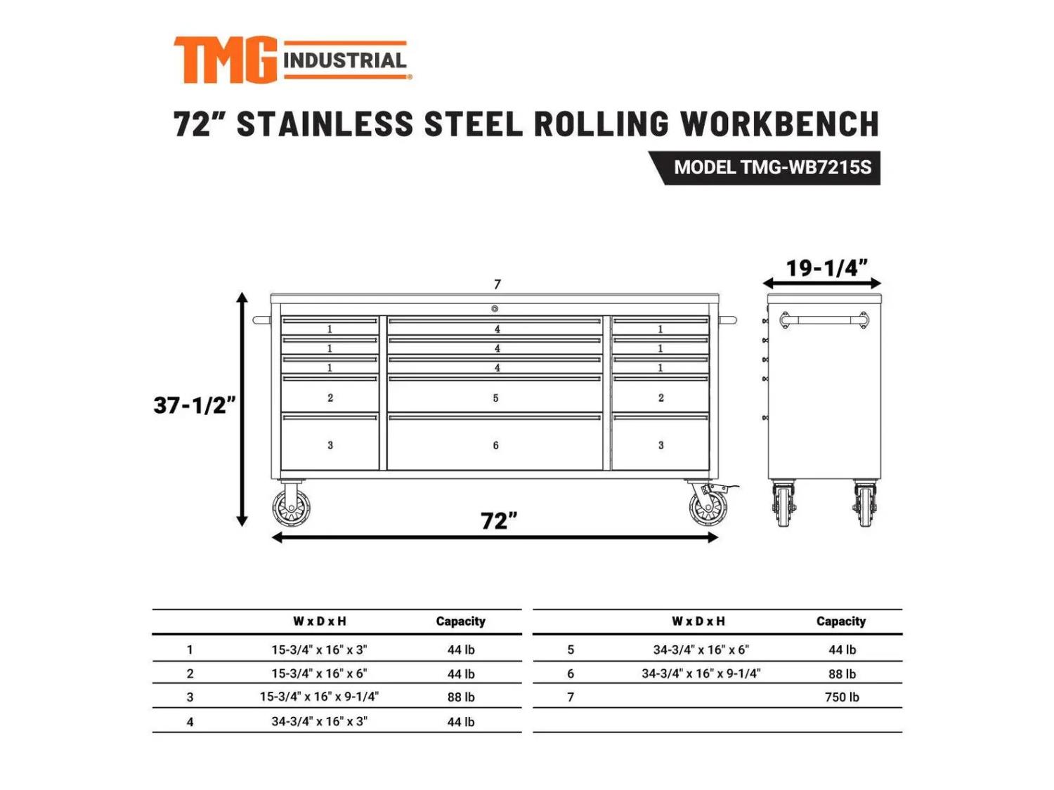 3109 StanForge WB7215S 72 Inch 15 Drawer Stainless Steel Rolling Workbench (Unused)