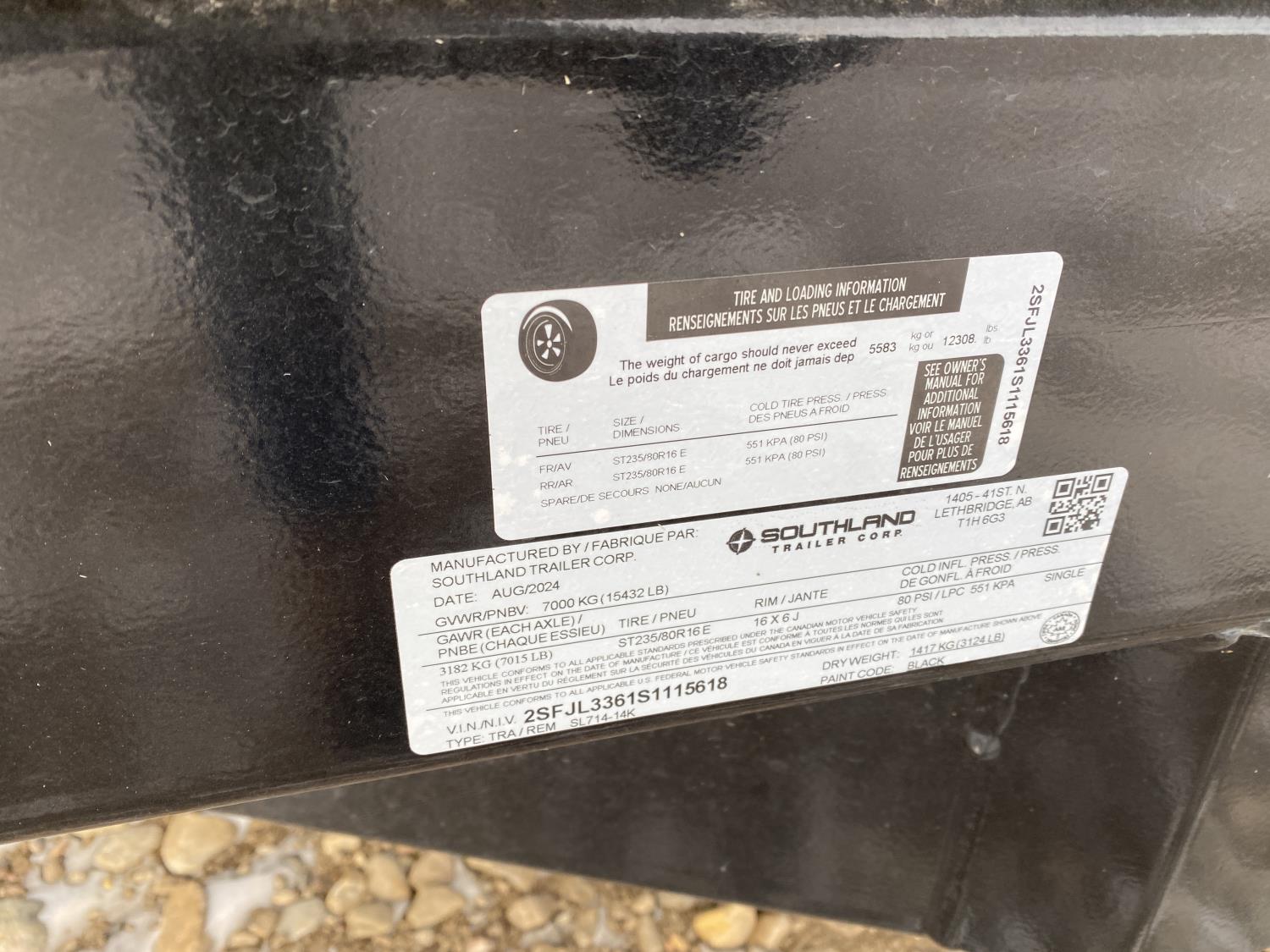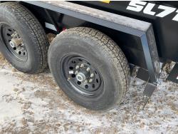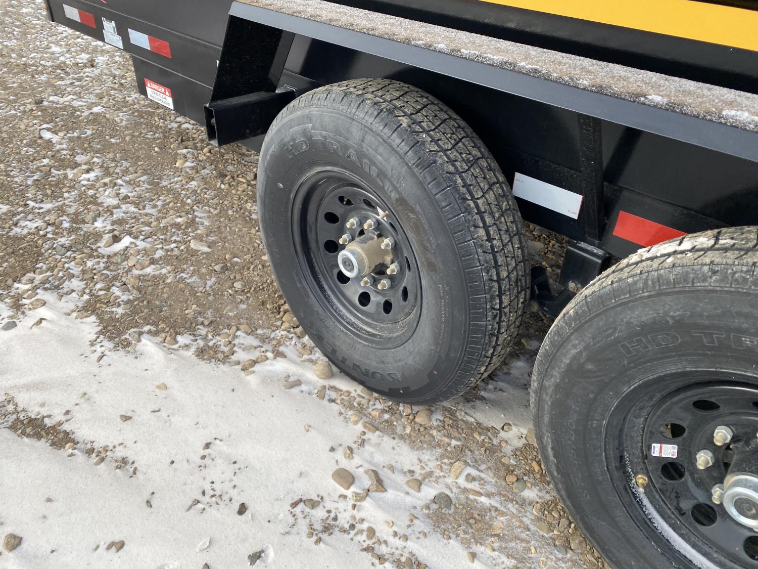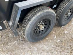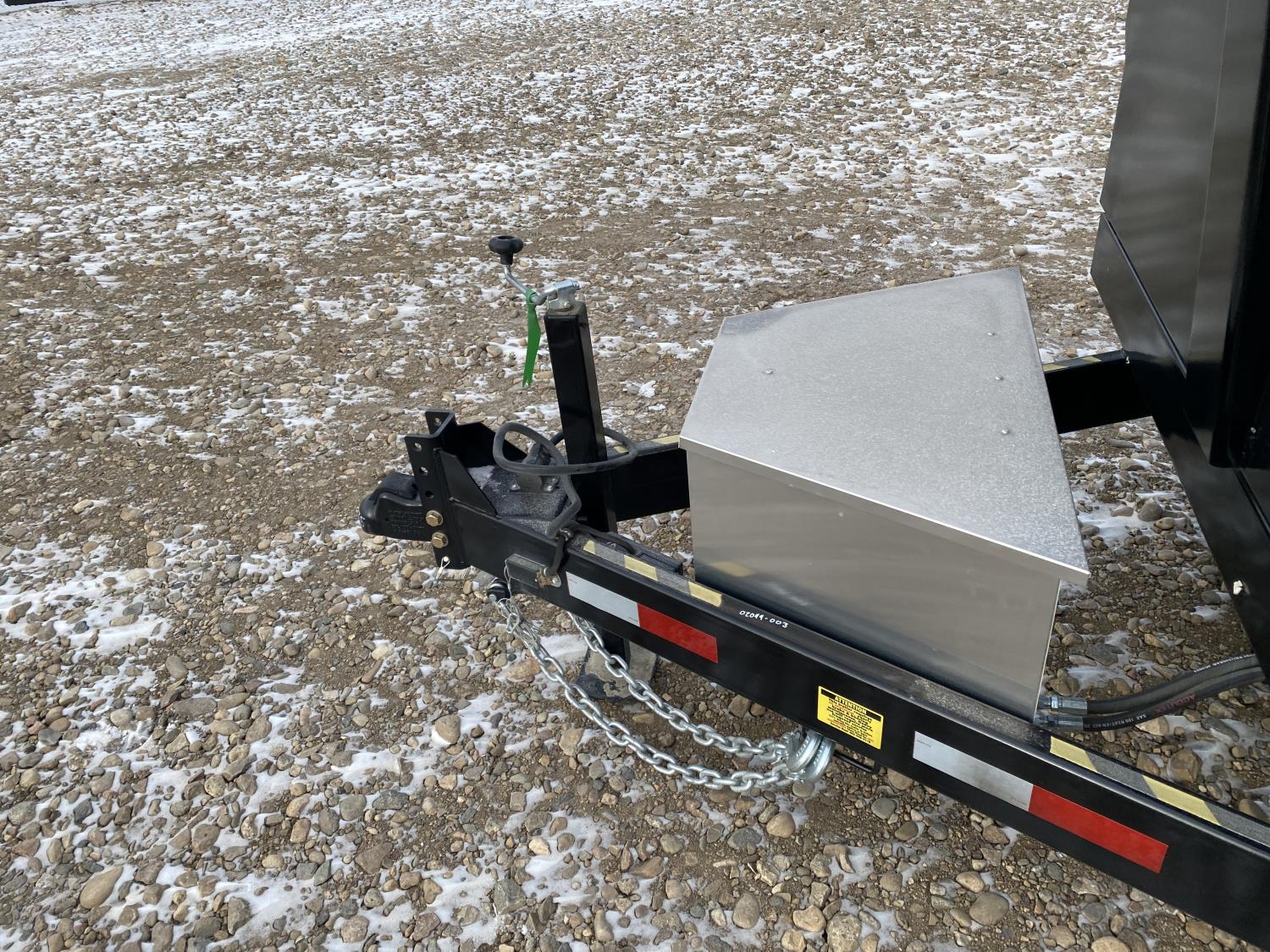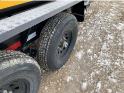 2-5/16 inch Ball hitch, 7 ft box width, 26 inch side wall height, roll tarp, ramps, corded lift remote, electric brakes, spring suspension, 7,015 lb axles, 235/80R16 tires