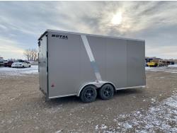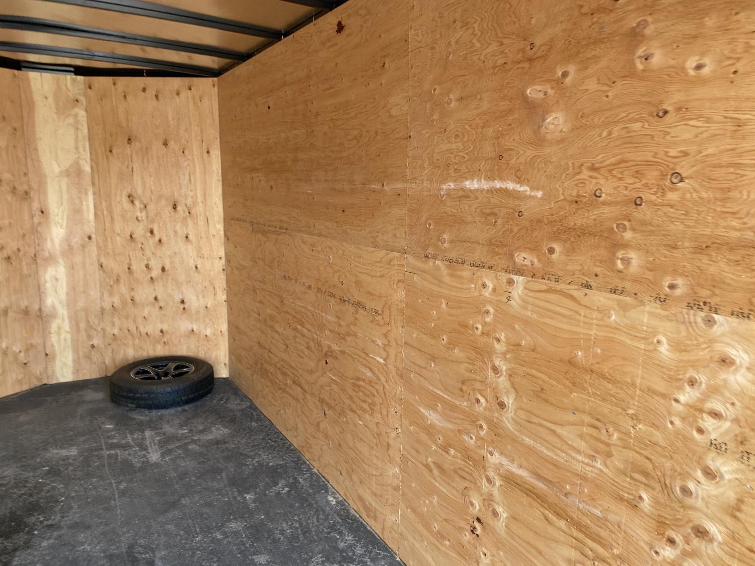 84 inch interior width, 86 inch interior height, 2-5/16 inch ball hitch, side door, fold down door, electric brakes, spring suspension, 3508 lb axles, 205/75R15 tires