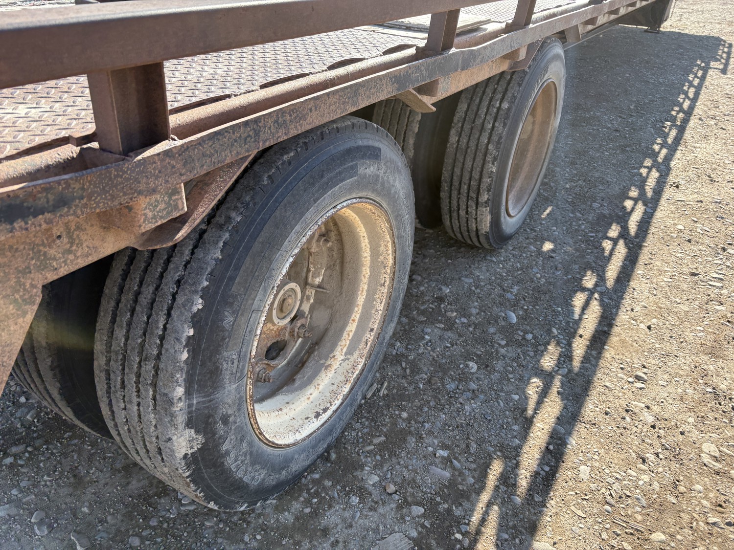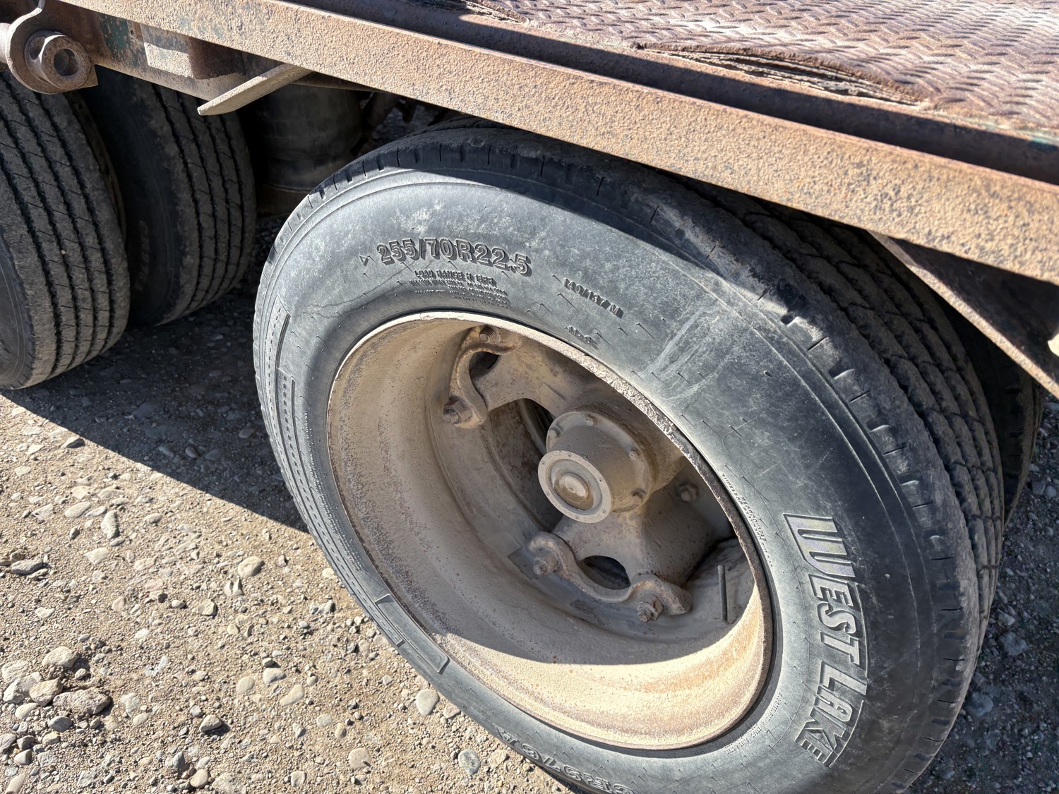 102 inch wide deck, 132 inch upper deck, wood deck, tool / storage box, bale extensions, air ride suspension, 255/70R22.5 tires