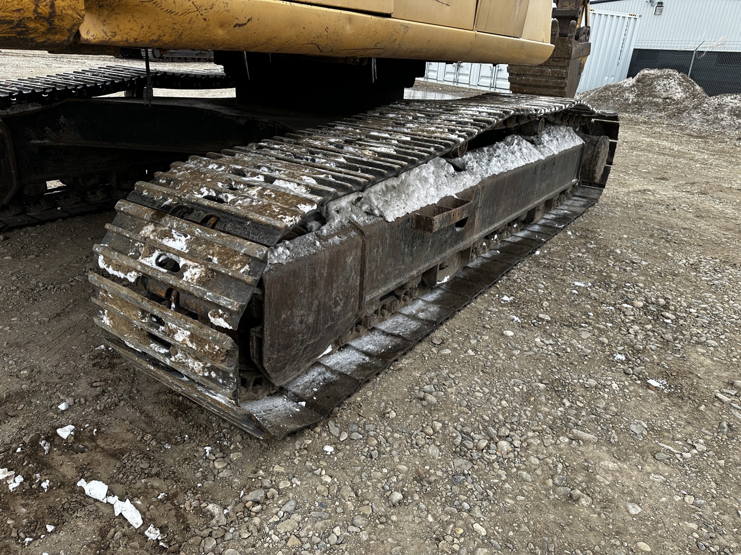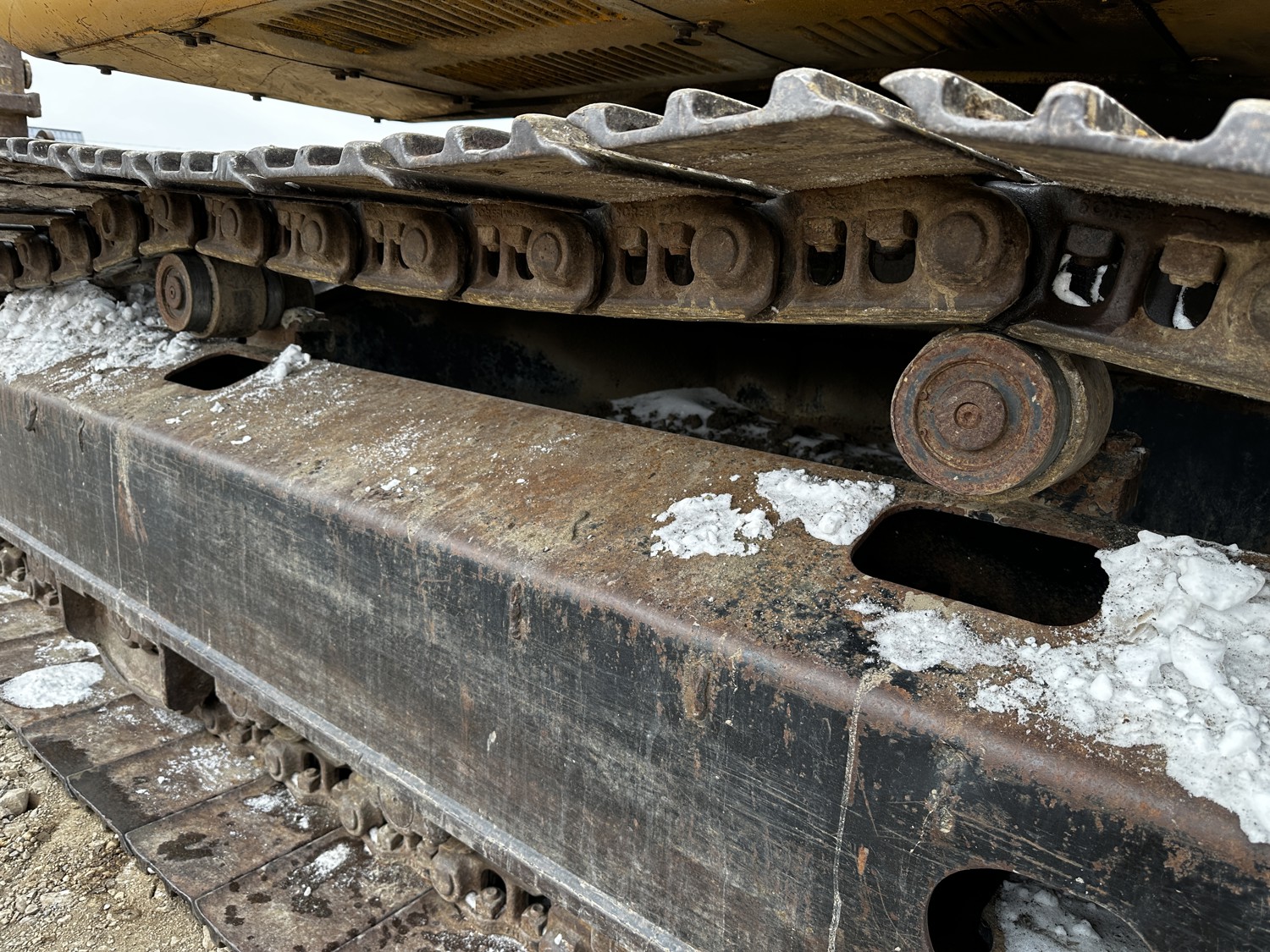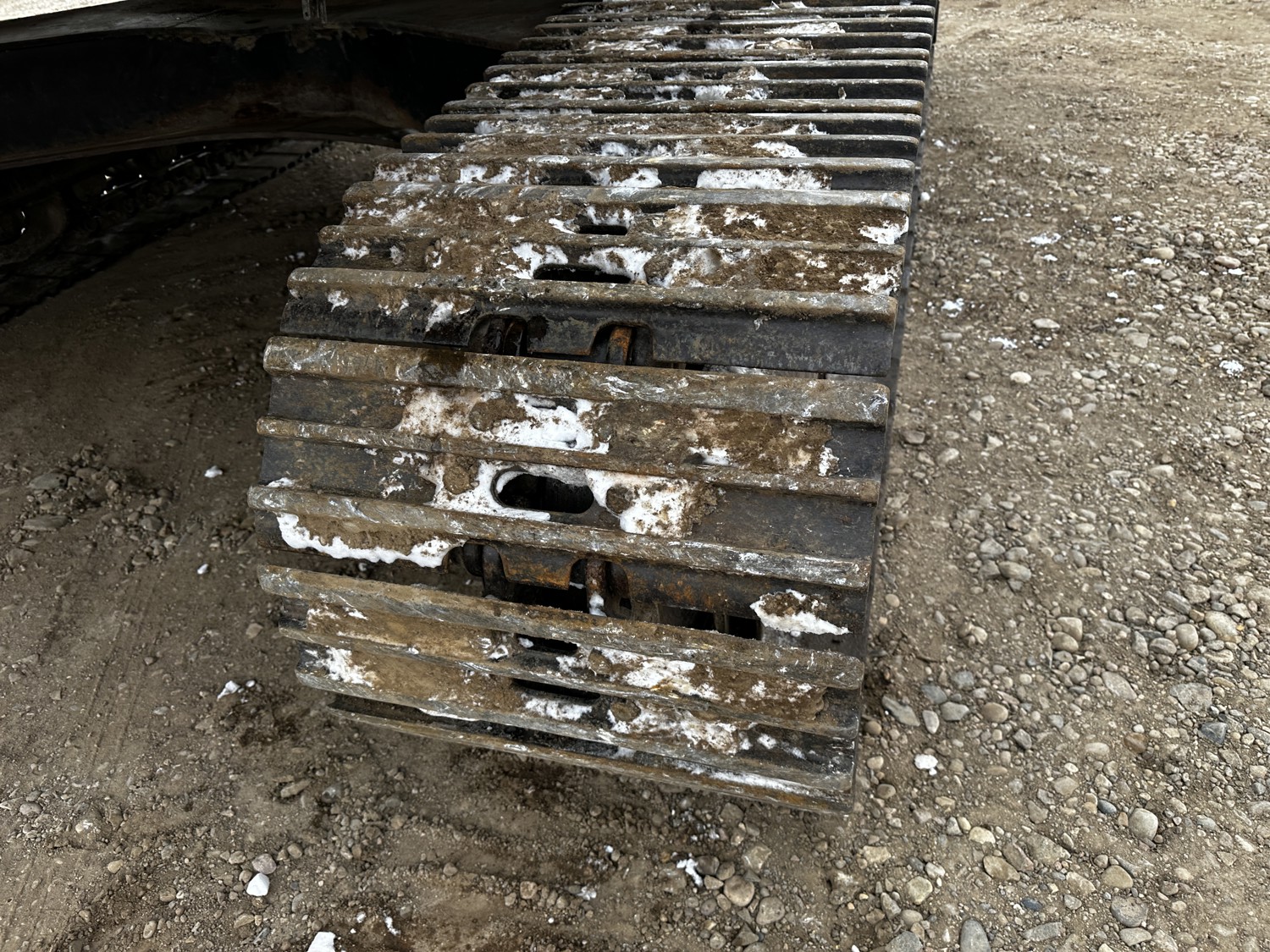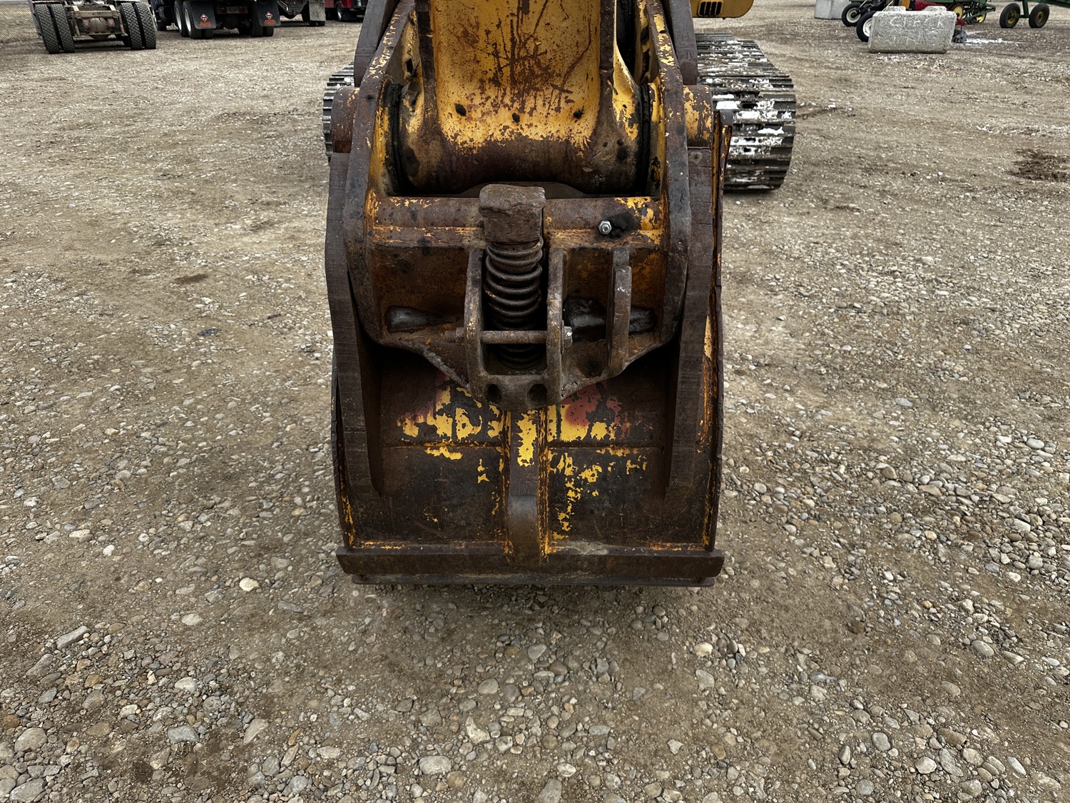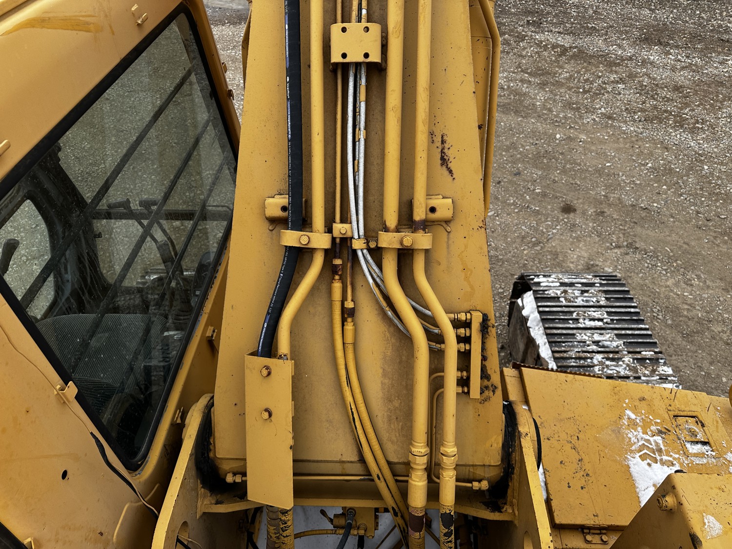 Enclosed cab, A/C, 33 inch dig bucket, manual coupler, 8 Ft 3 inch stick, auxiliary hydraulics , 24 inch track pads, triple grousers