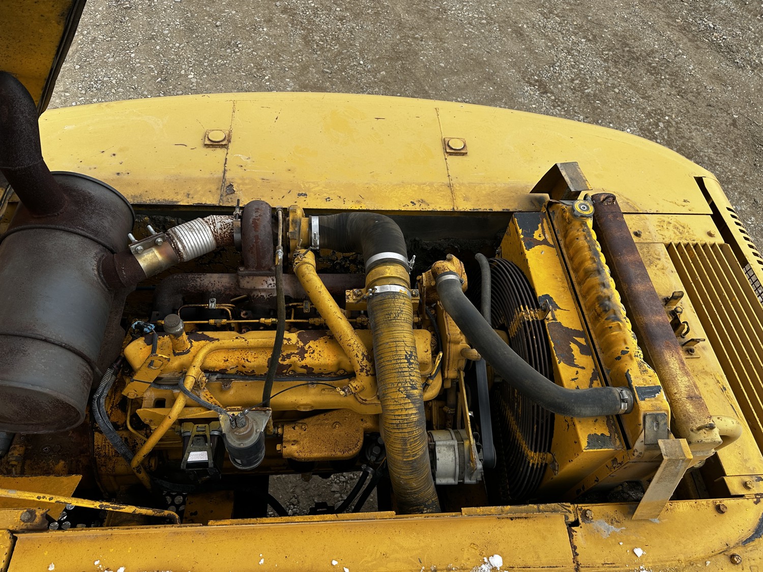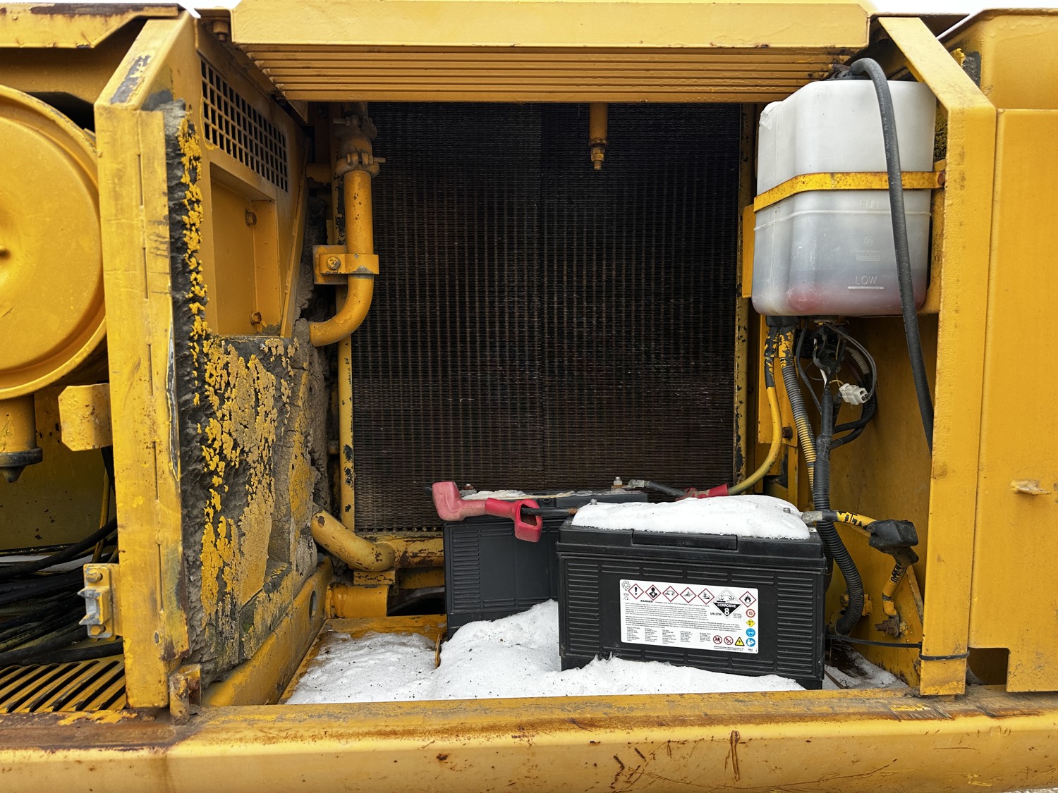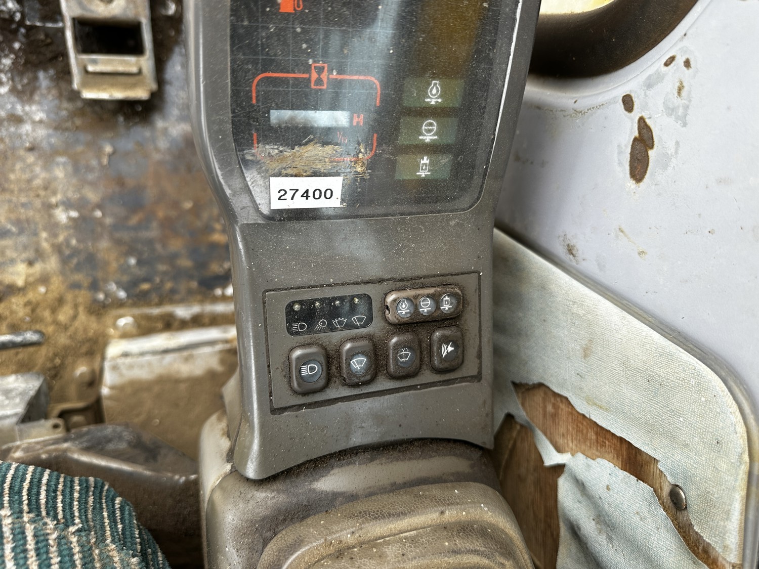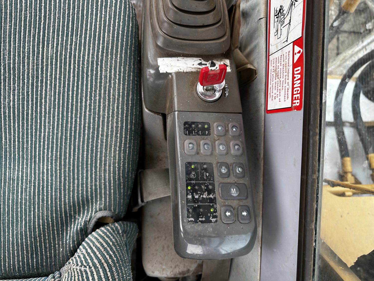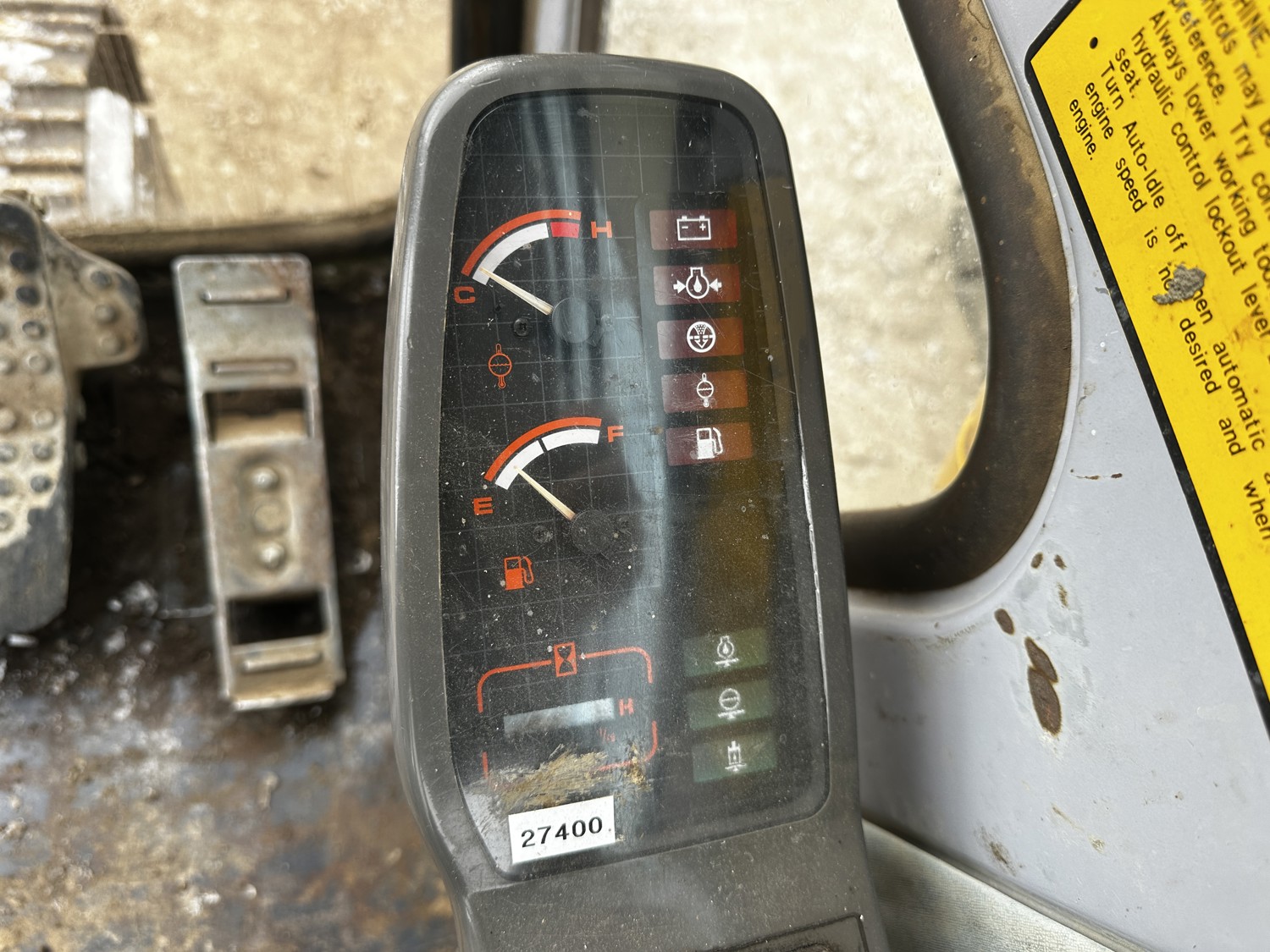 Enclosed cab, A/C, 33 inch dig bucket, manual coupler, 8 Ft 3 inch stick, auxiliary hydraulics , 24 inch track pads, triple grousers