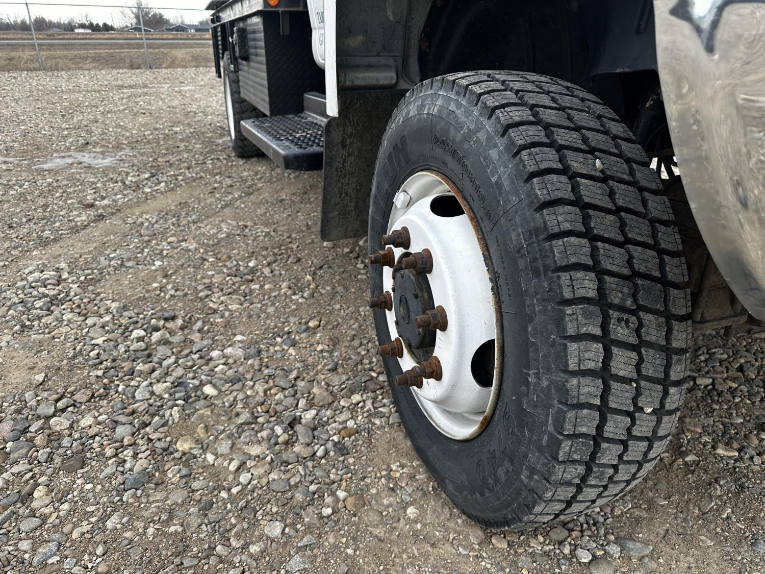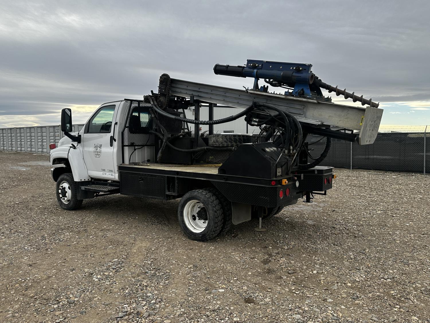 Duramax 6.6 L V8 diesel engine, electric engine block heater, positive air shutoff, Allison 6 speed automatic transmission, A/C, P/W, P/L, cruise control, stereo, running boards, hydraulic wet kit, tool boxes, 7 ft 8 inch x 11 ft 3 inch deck, spring suspension, 8,000 lb front axle, 13,500 lb rear axles, 135 inch WB, SPT automatic hammer, 18 inch auger, 200 inch max depth, mobile drill head, 245/70R19.5 tires