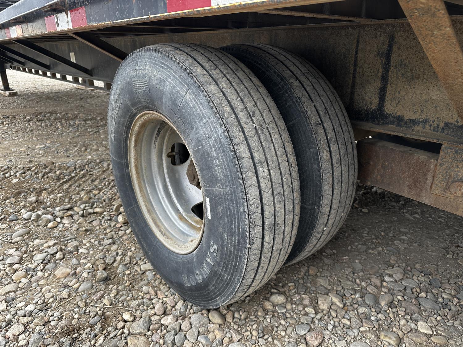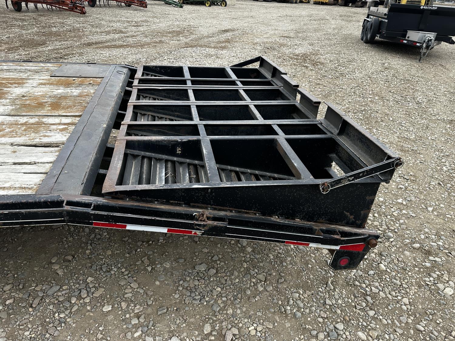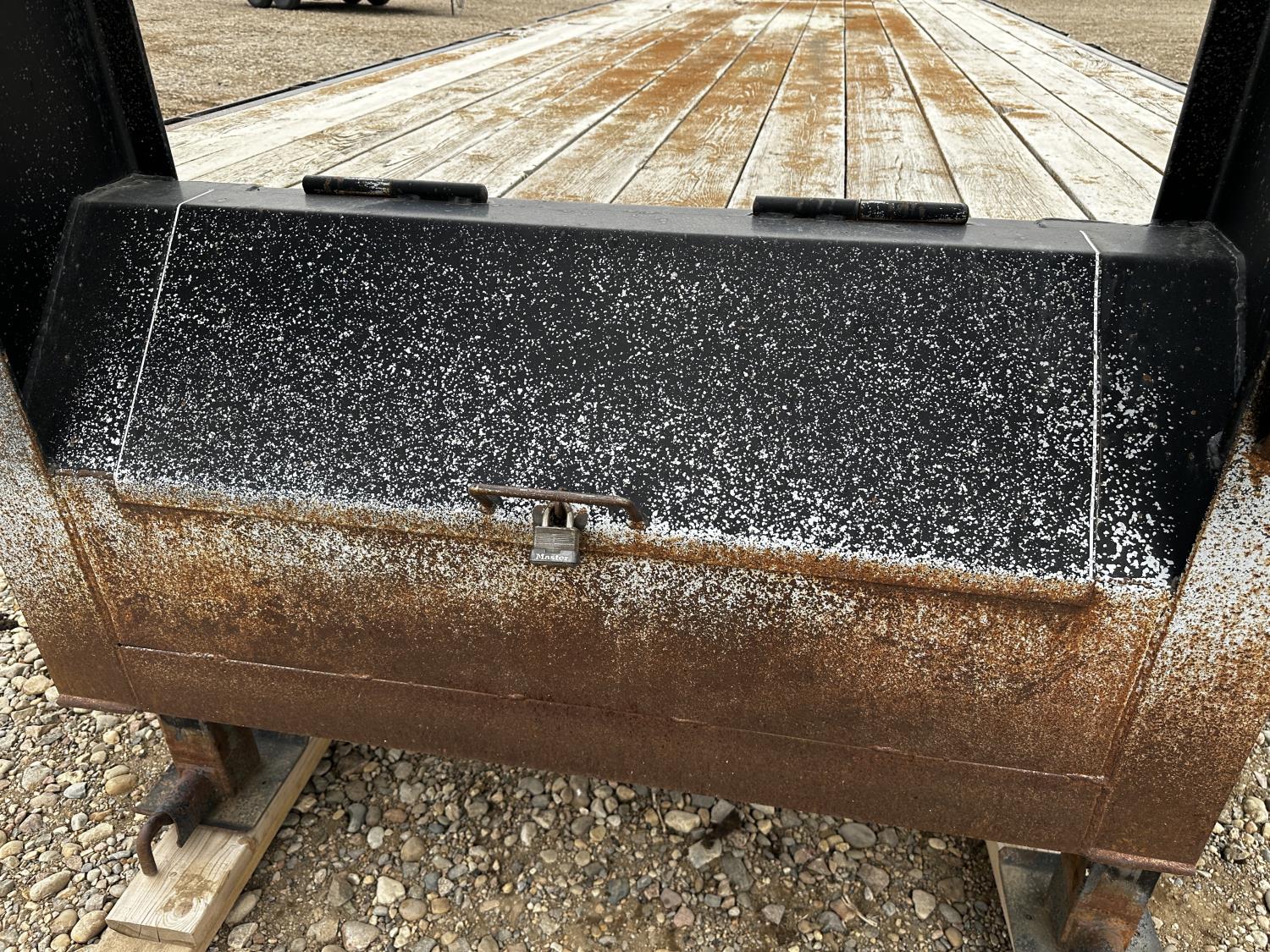 101 inch wide deck, 57 inch beaver tails, wood deck, flip over ramps, electric brakes, spring suspension, tool / storage box, rub rails, stake pockets, 10020 lb axles, 235/85R16 tires
