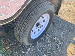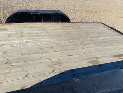 82 inch wide deck, wood deck, slide in ramps, electric brakes, spring suspension, 2 inch ball hitch, stake pockets