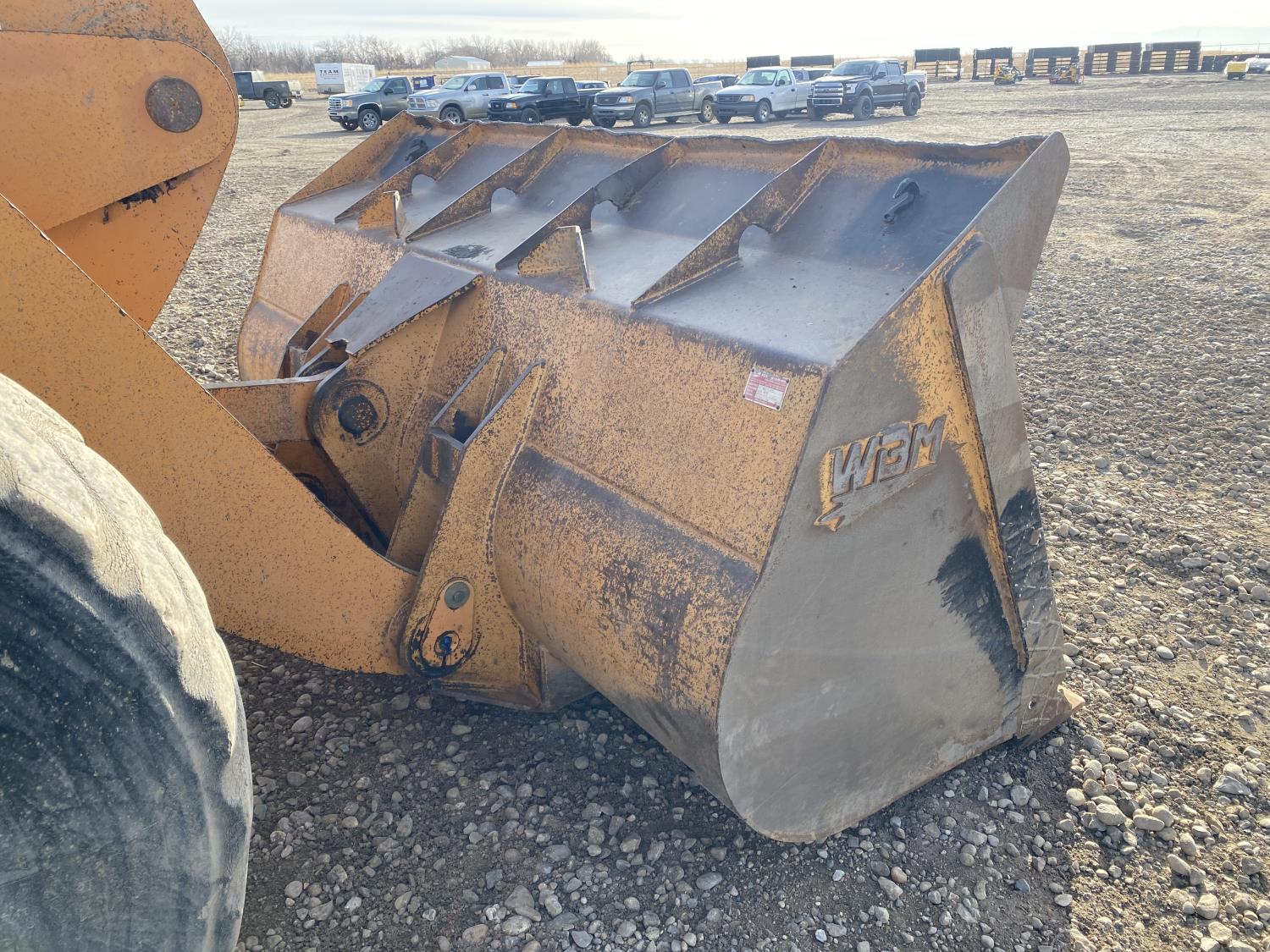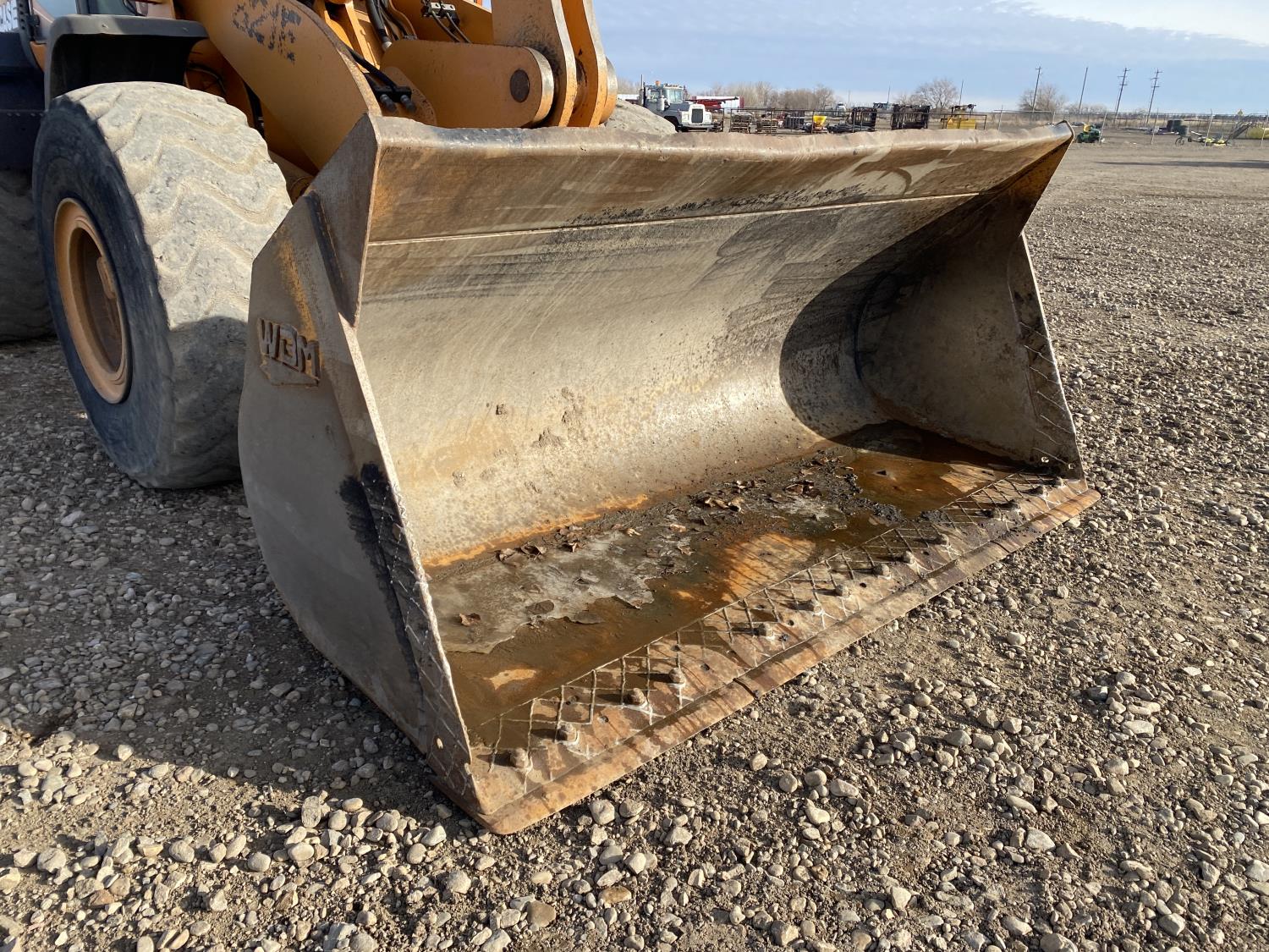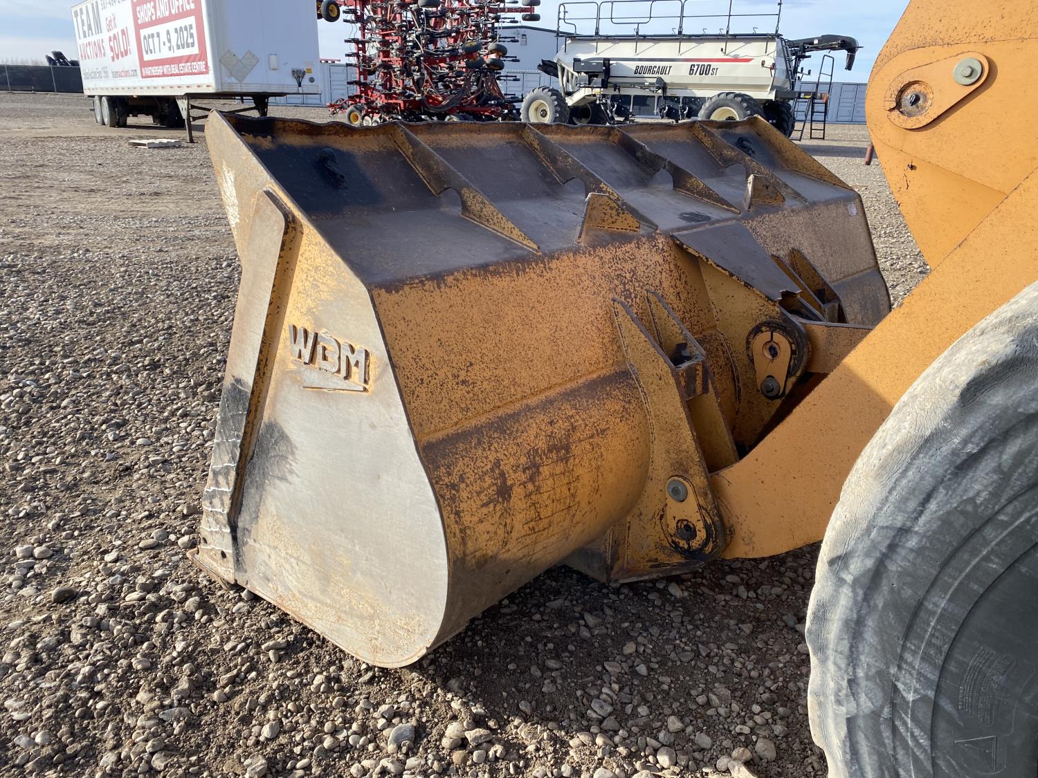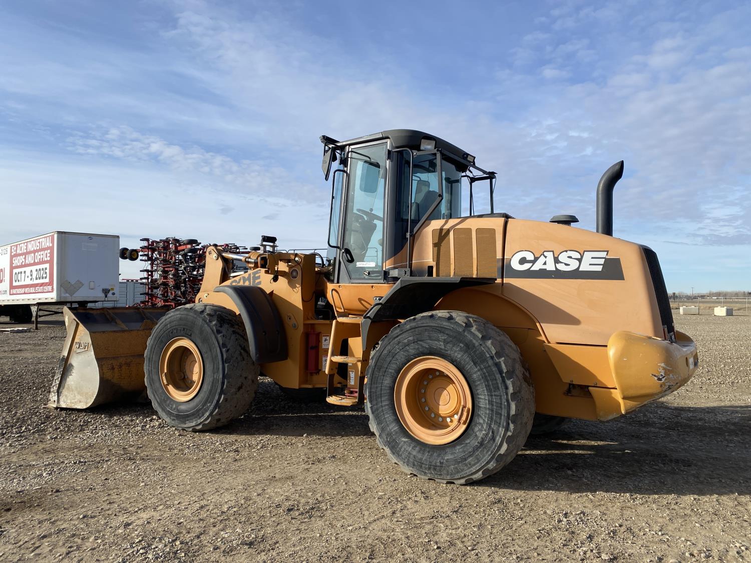 Enclosed cab, A/C, 4 speed powershift transmission, cab screens, 119 inch smooth bucket, manual coupler, auxiliary hydraulics, 23.5R25 tires