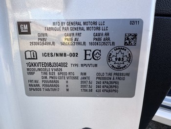 3.6 L, V6, automatic transmission, leather, P/W, P/L, A/C, navigation system, 3rd row seating, DVD player, sunroof, heated and cooled seats, 255/55R20 tires