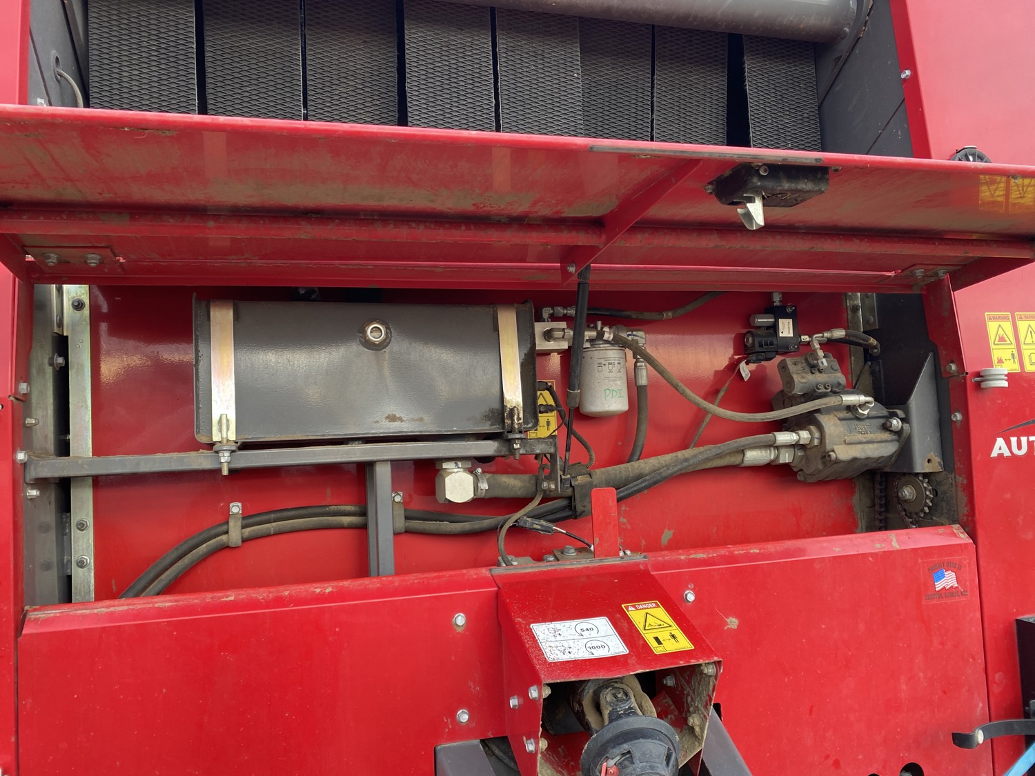 1000 PTO, 84 inch pickup, hydraulic lift, (2) gauge wheels, 5x6 ft bale size, net wrap, monitor, 7,034 bale count, 21.5L-16.1 tires