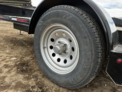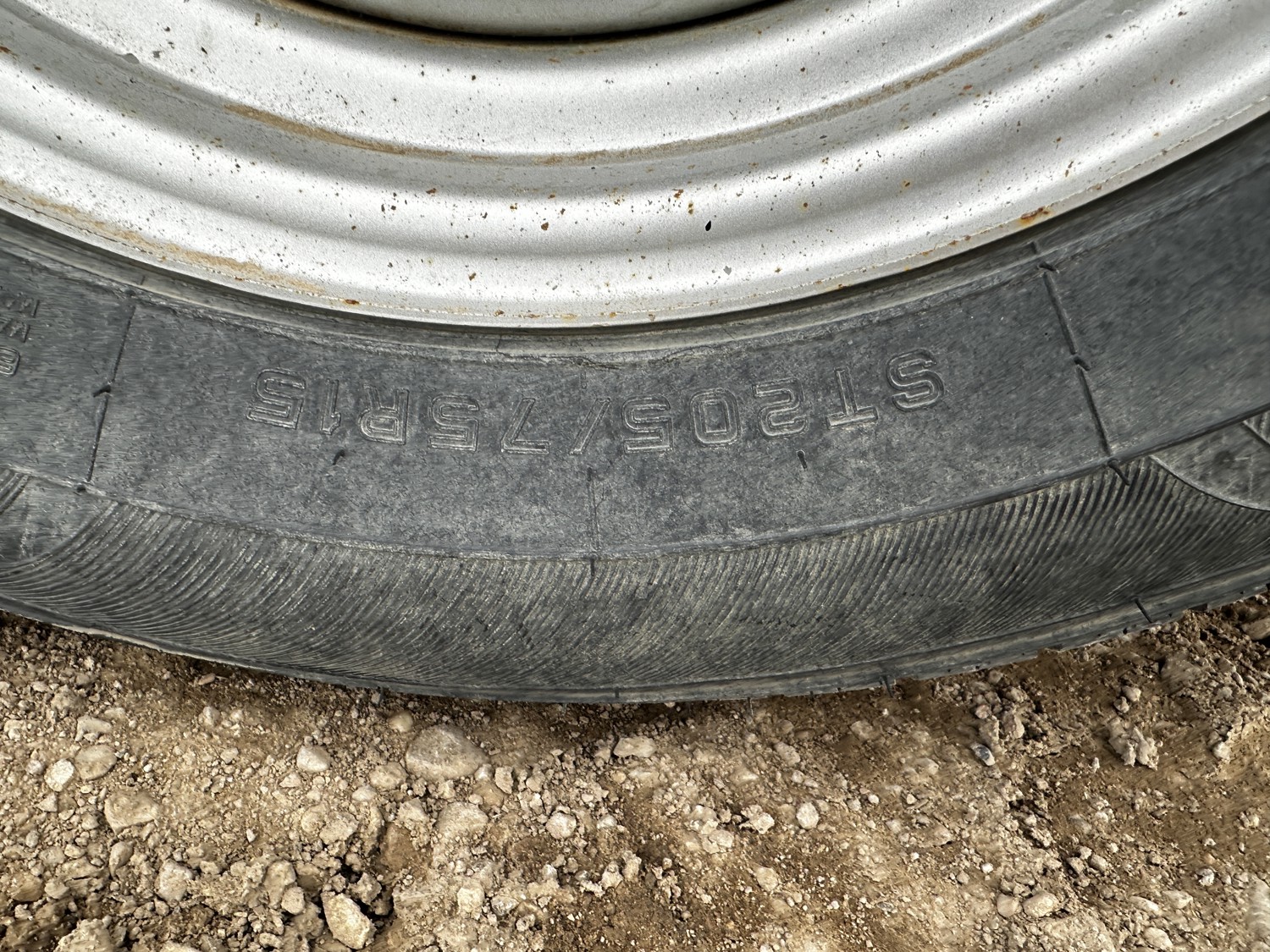 75 inch wide deck, wood deck, flip over ramps, electric brakes, spring suspension, 2 inch ball hitch, stake pockets, 2998 lb axles, 205/75R15 tires