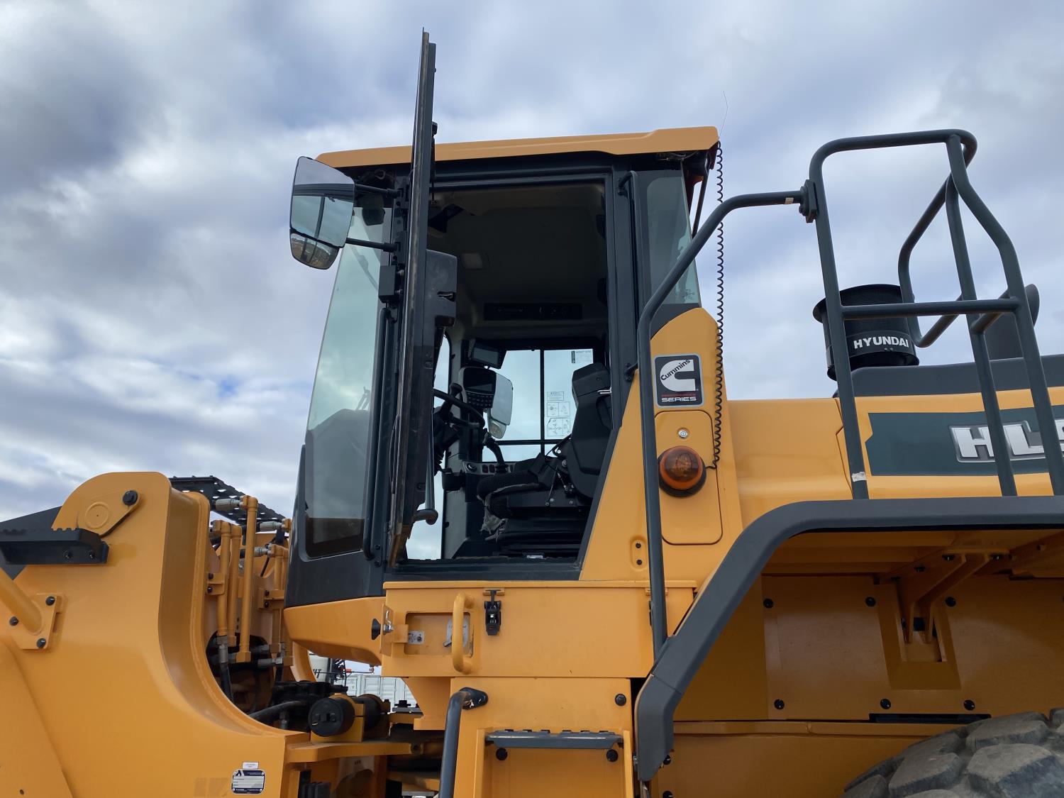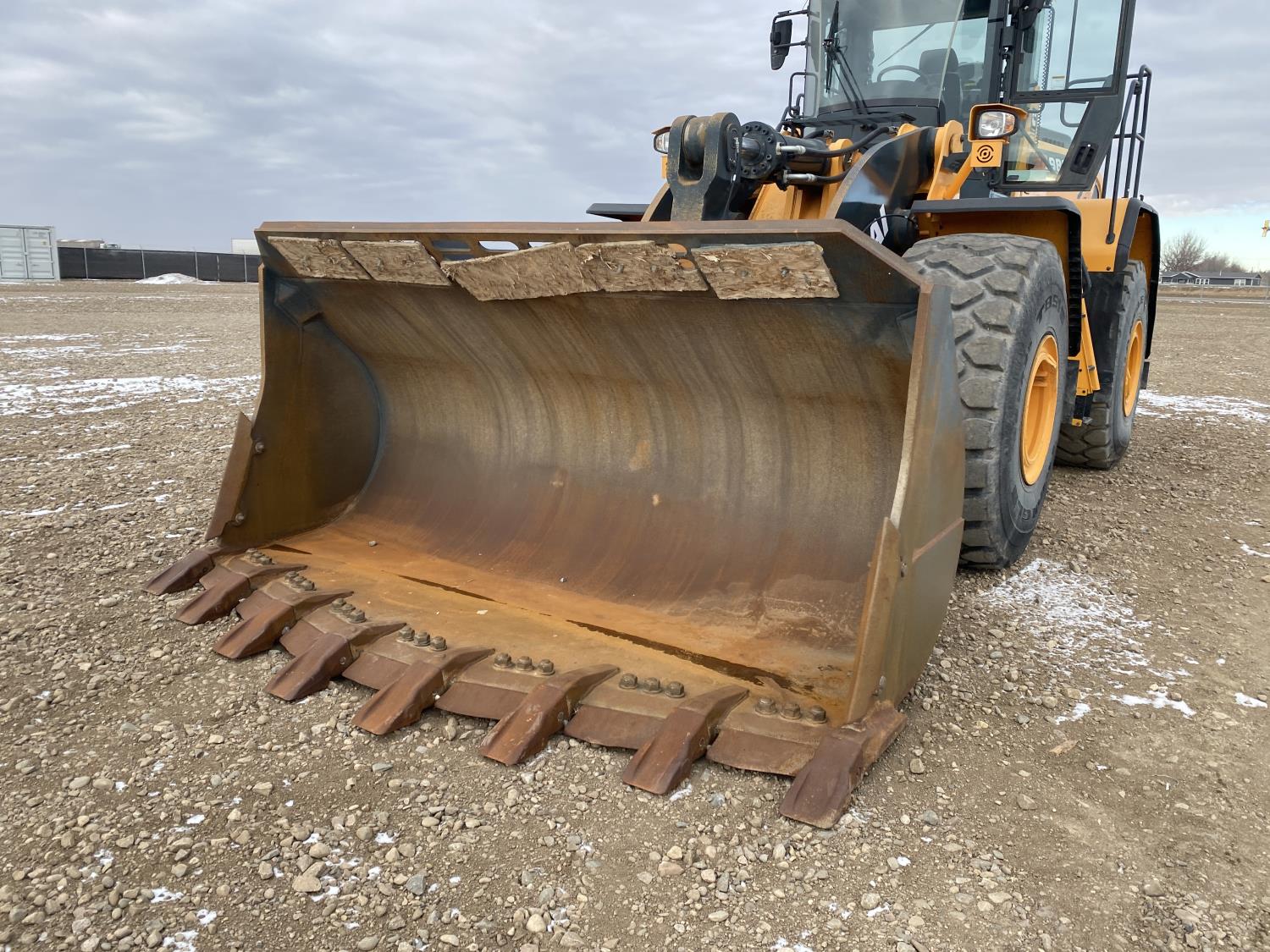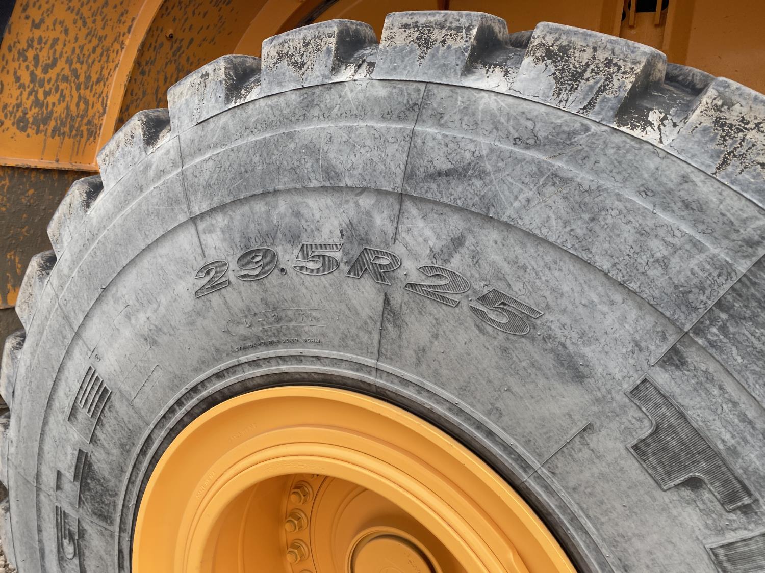 Enclosed cab, A/C, rear view cameras, 4 speed powershift transmission, scale, electric circulating block heater, cab screens, 140 inch toothed bucket, manual coupler, 29.5R25 tires