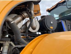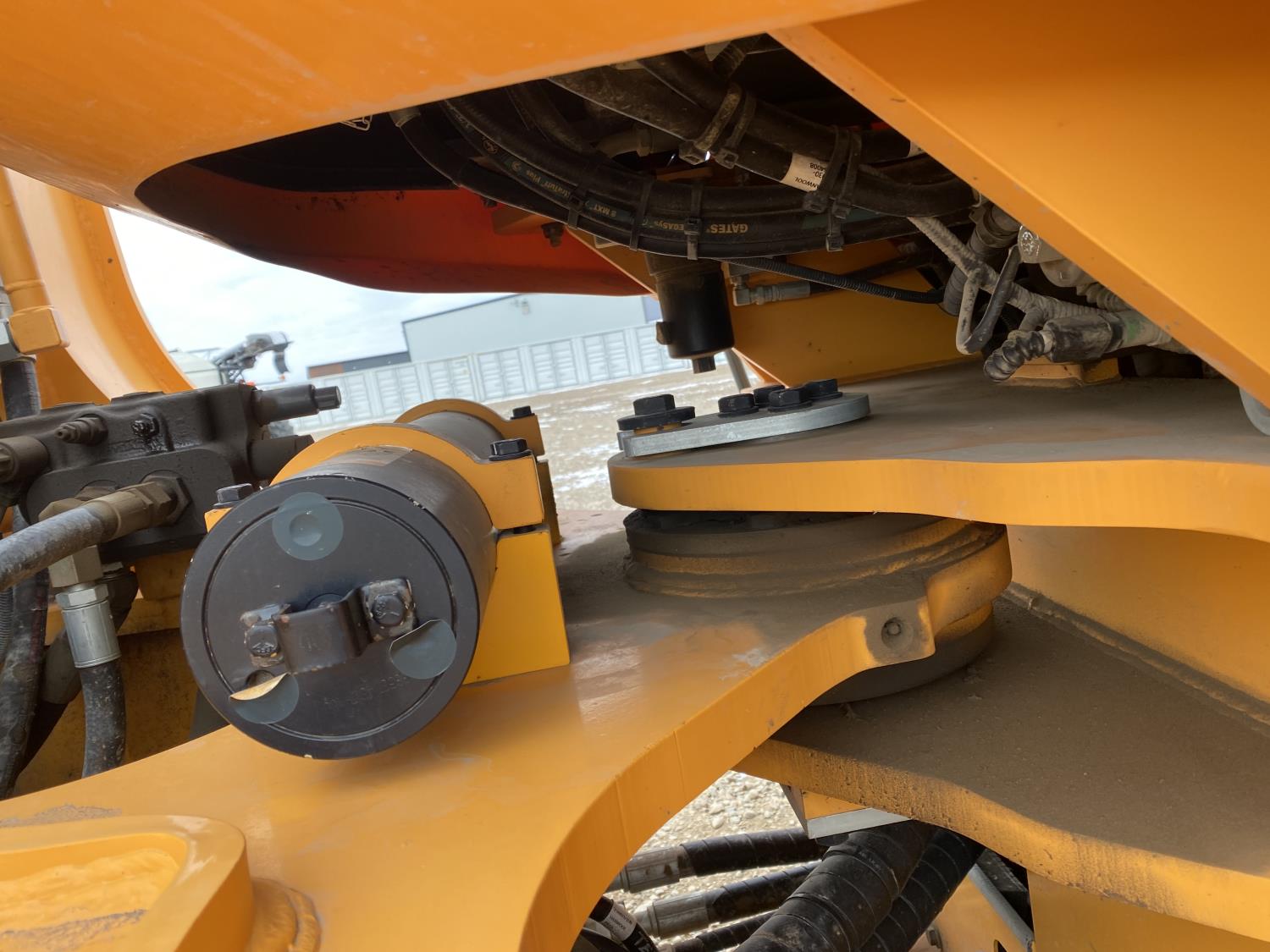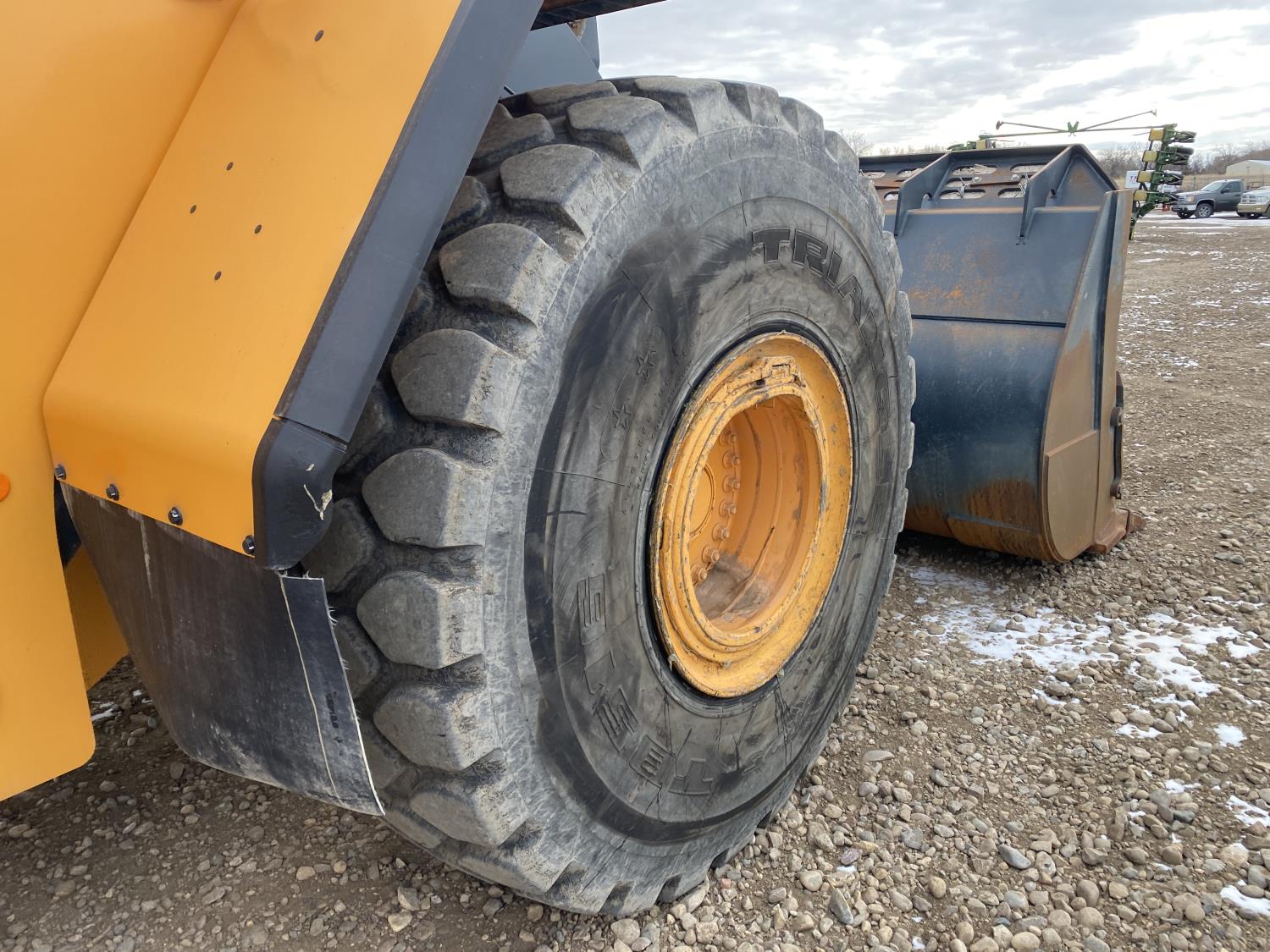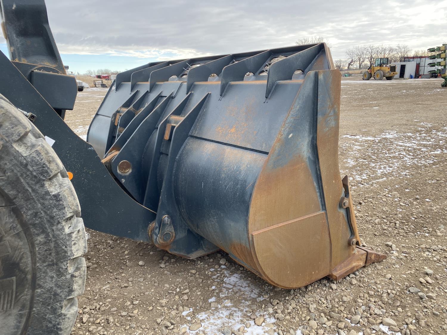 Enclosed cab, A/C, rear view cameras, 4 speed powershift transmission, scale, electric circulating block heater, cab screens, 140 inch toothed bucket, manual coupler, 29.5R25 tires
