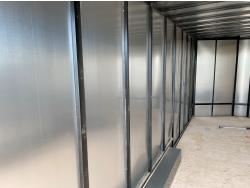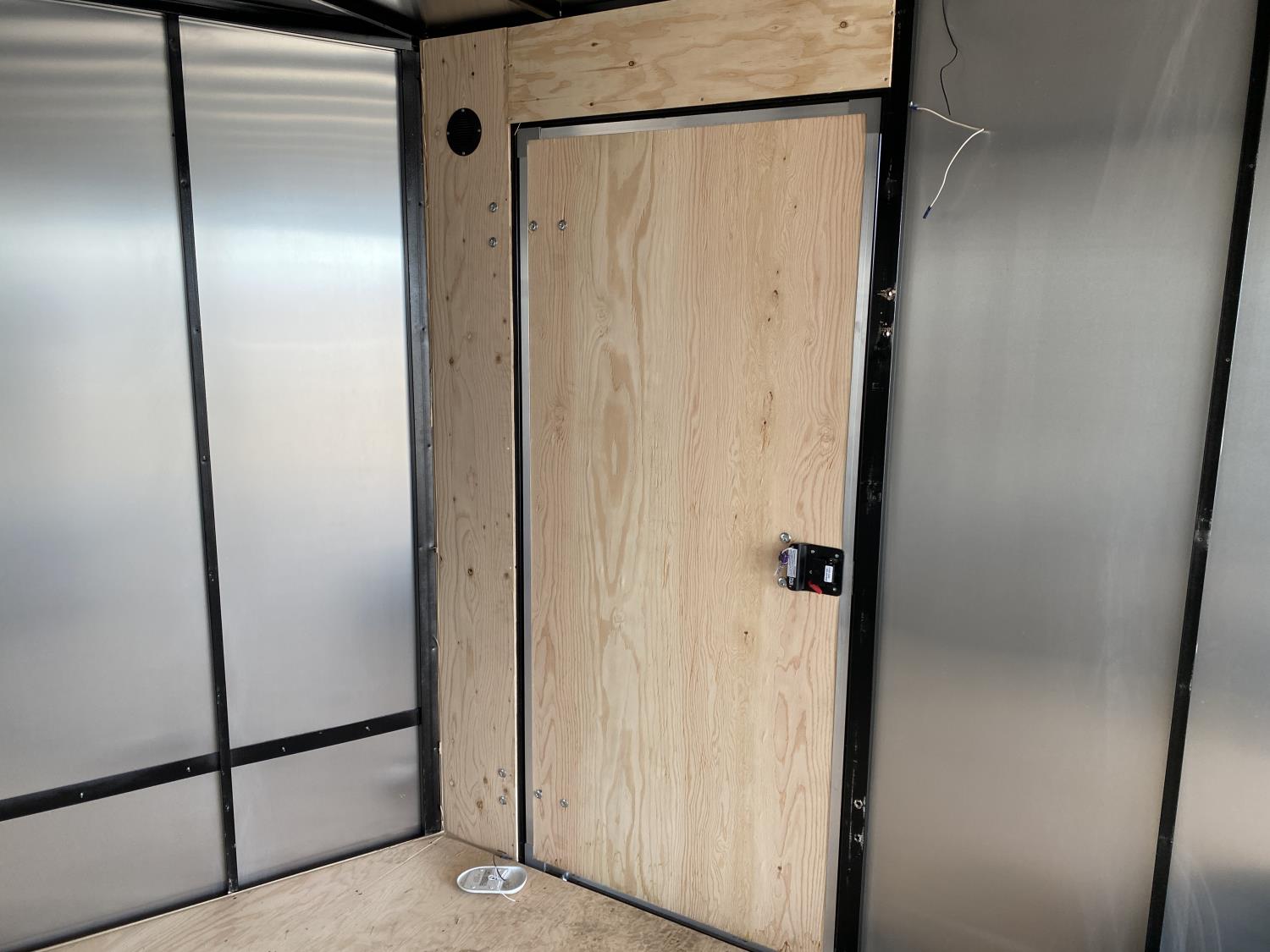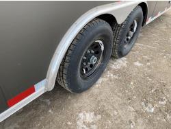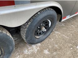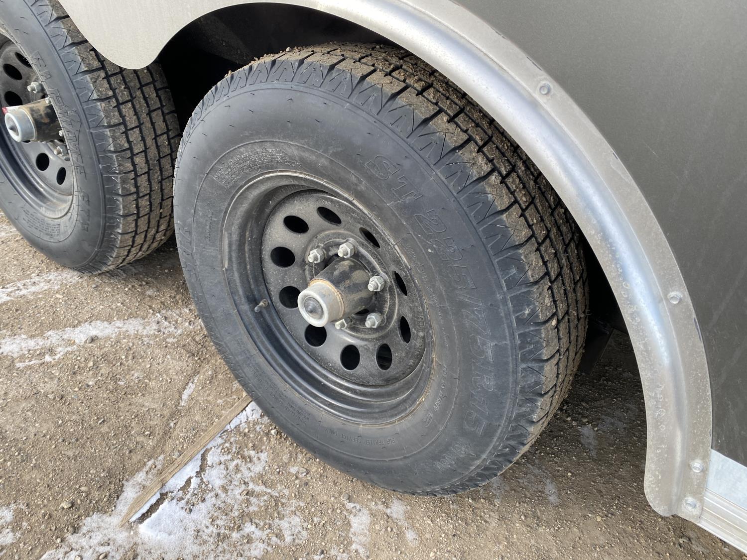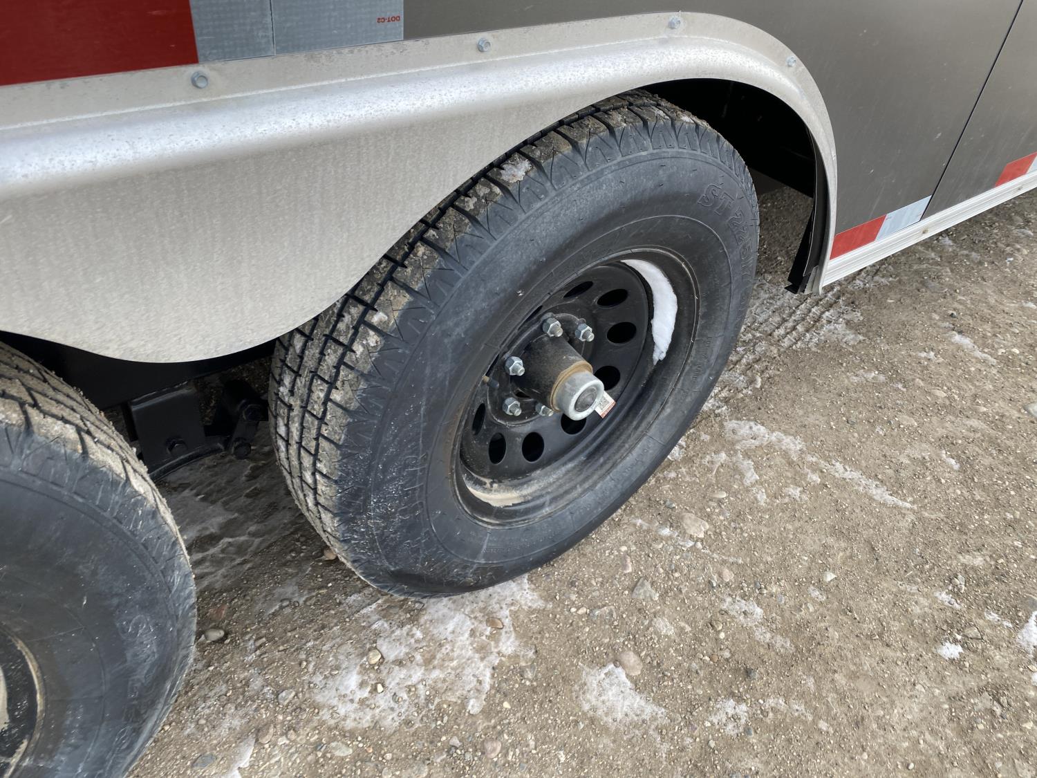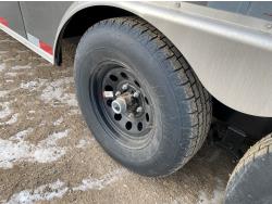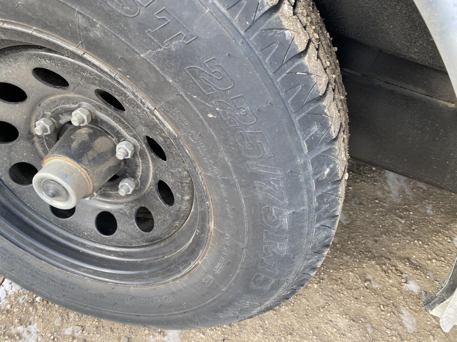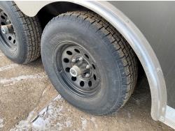 96 inch interior width, 86 inch interior height, 2-5/16 inch ball hitch, side door, fold down door, electric brakes, spring suspension, 5079 lb axles, 225/75R15 tires