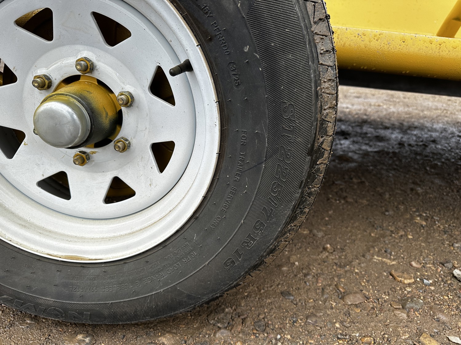80 inch width, 48 inch height, 2-5/16 ball hitch, spring suspension, tire size 225/75R15