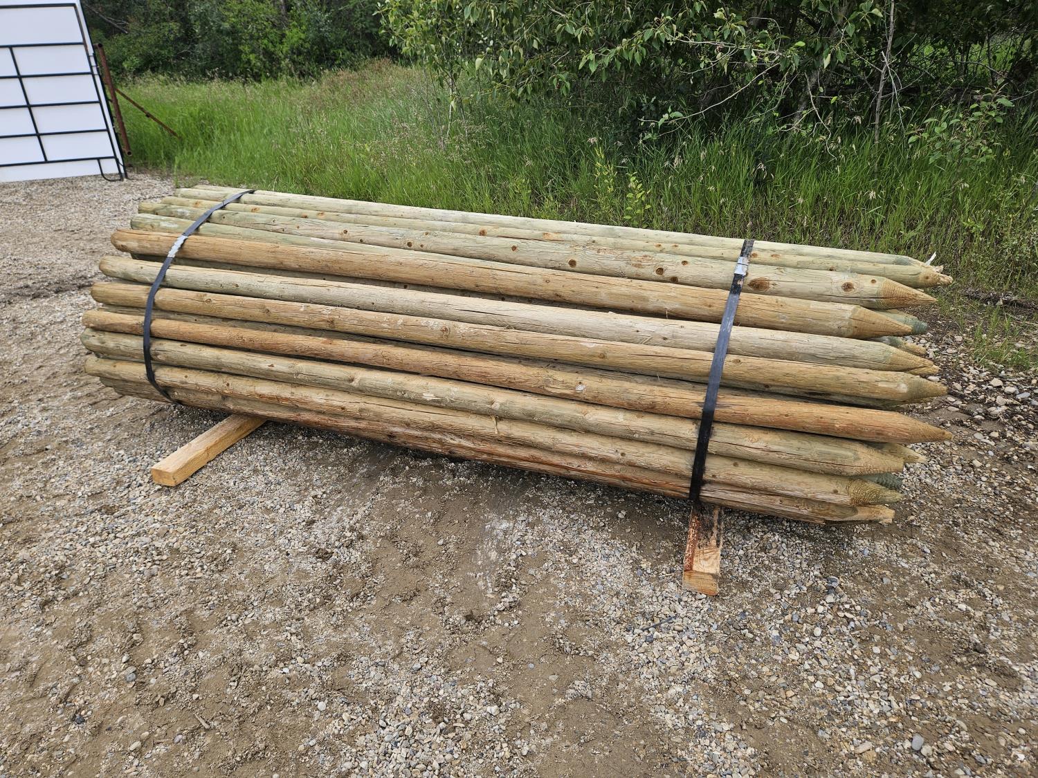 59 Qty of (100) 3-4 Inch X 10 Ft Treated Fence Posts (Unused)