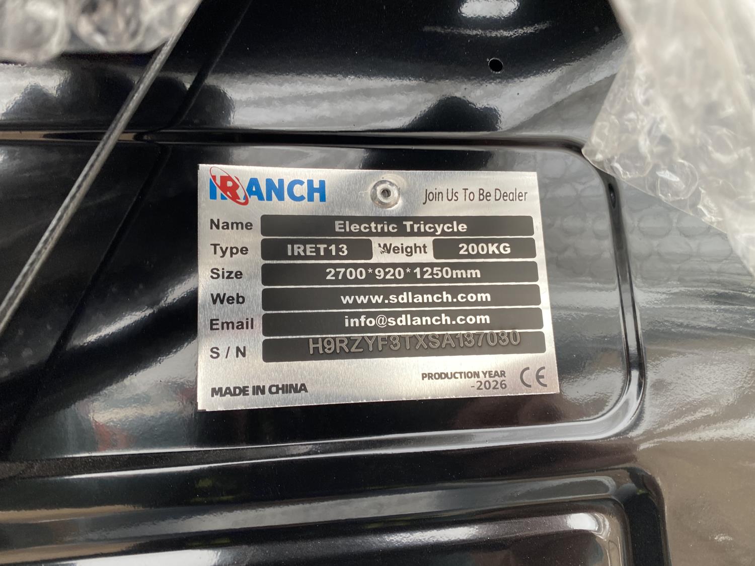 SDLANCH IRET13 60V Electric Tricycle (Unused)