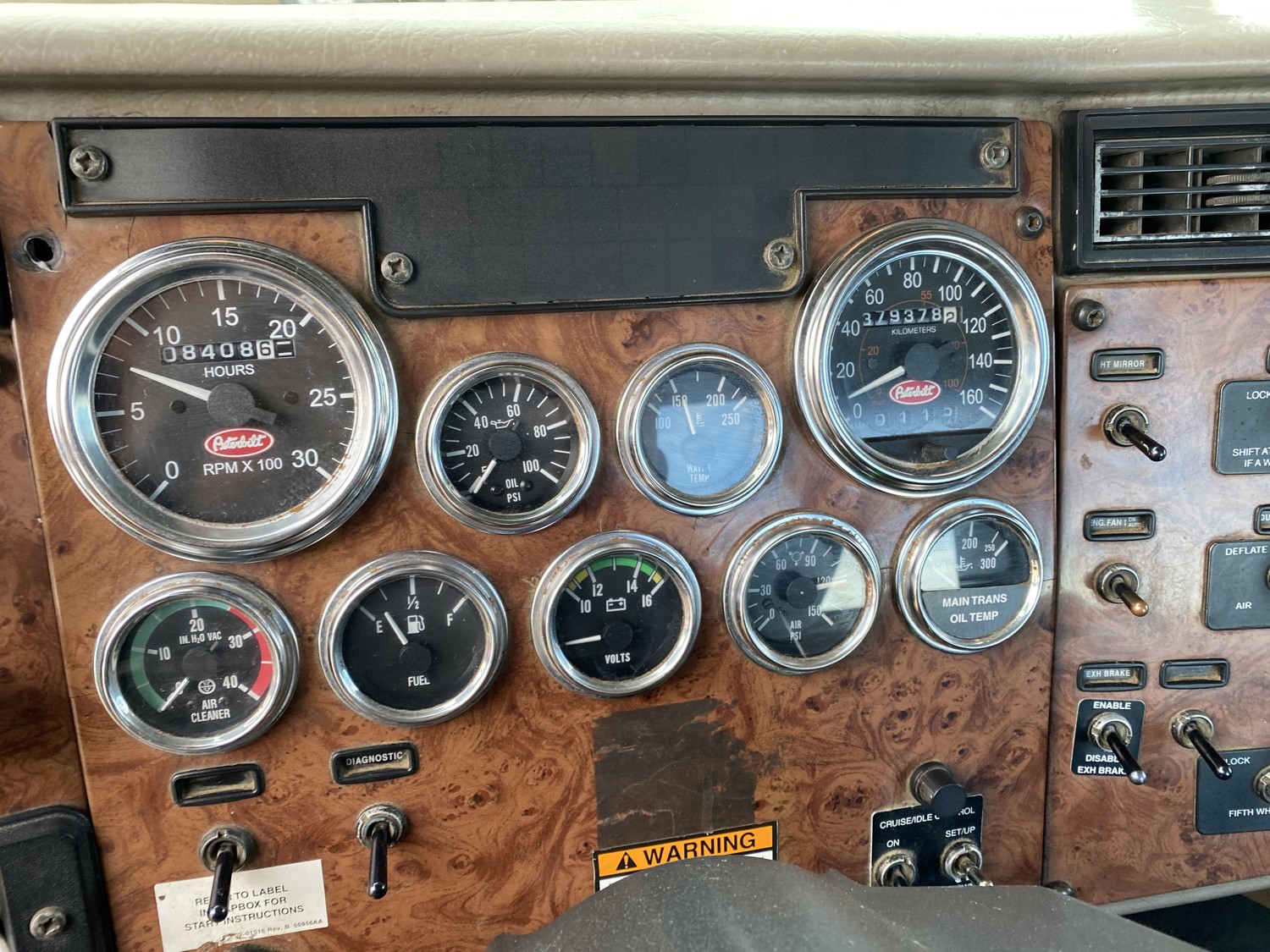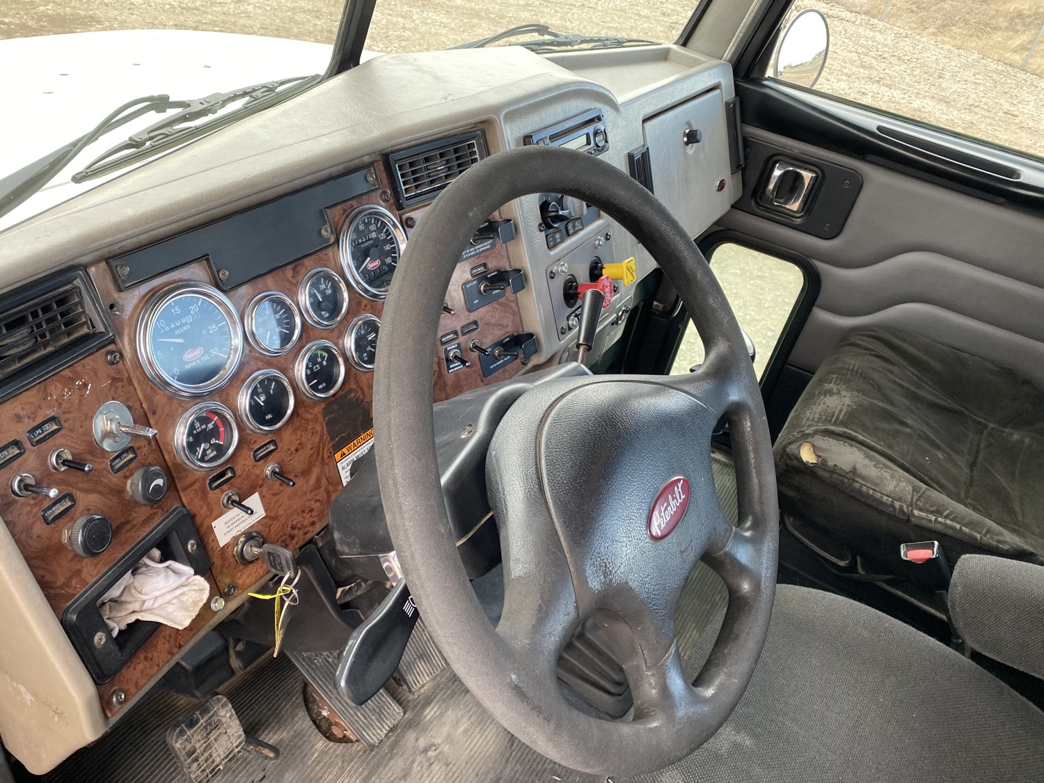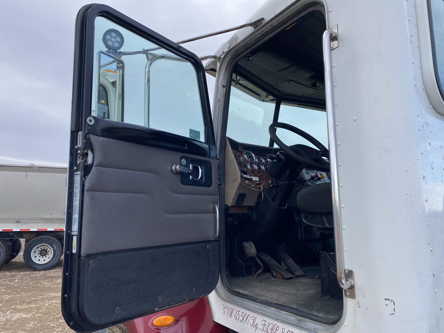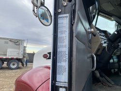 Cummins ISC315 8.3 L 6 cylinder 315 HP engine, engine block heater, Eaton Fuller RT011908LL 13 speed manual transmission, A/C, air ride driver seat, air ride cab, Peterbilt air ride suspension, 12,000 lb front axle, 40,000 lb rear axles, diff lock, 4.88 ratio, 160 inch WB, all aluminum wheels, 11R22.5 tires