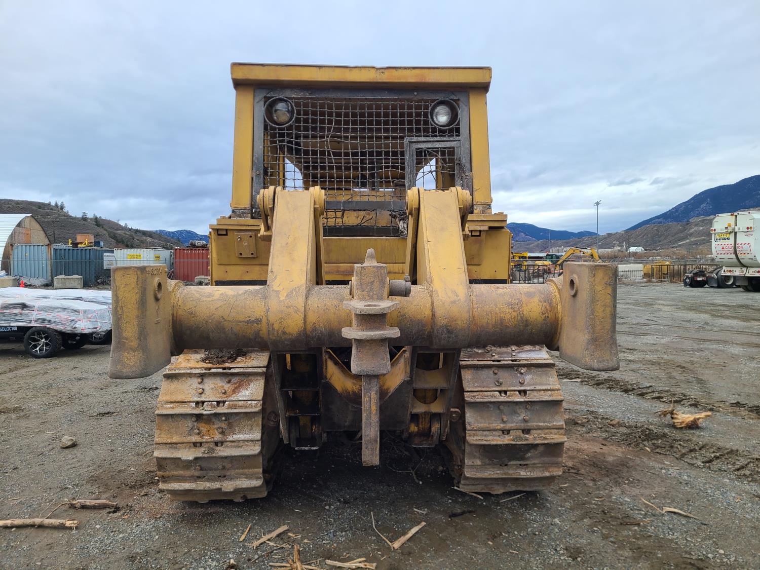 Open station, 3406 diesel engine, 4 speed powershift transmission, 12 Ft 8 inch twin tilt angle dozer, Triple Shank ripper, *Blade has been removed for transport*, 26 inch track pads, single grousers, ice cleats