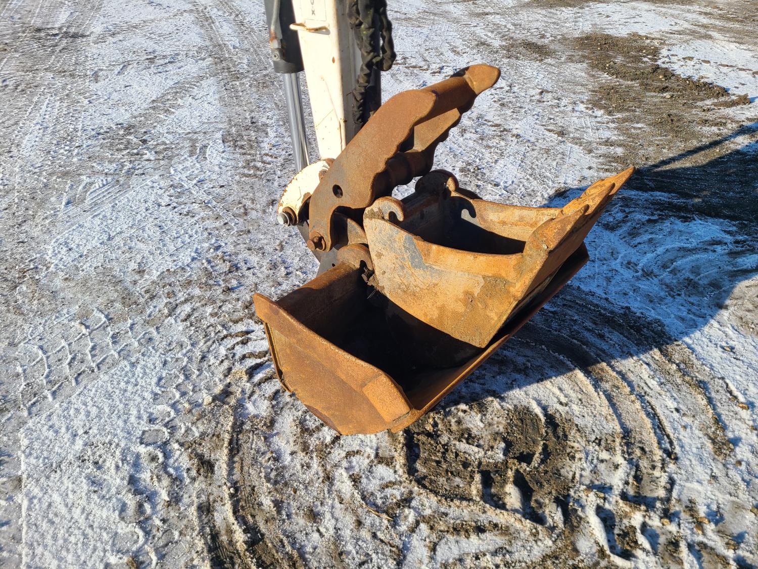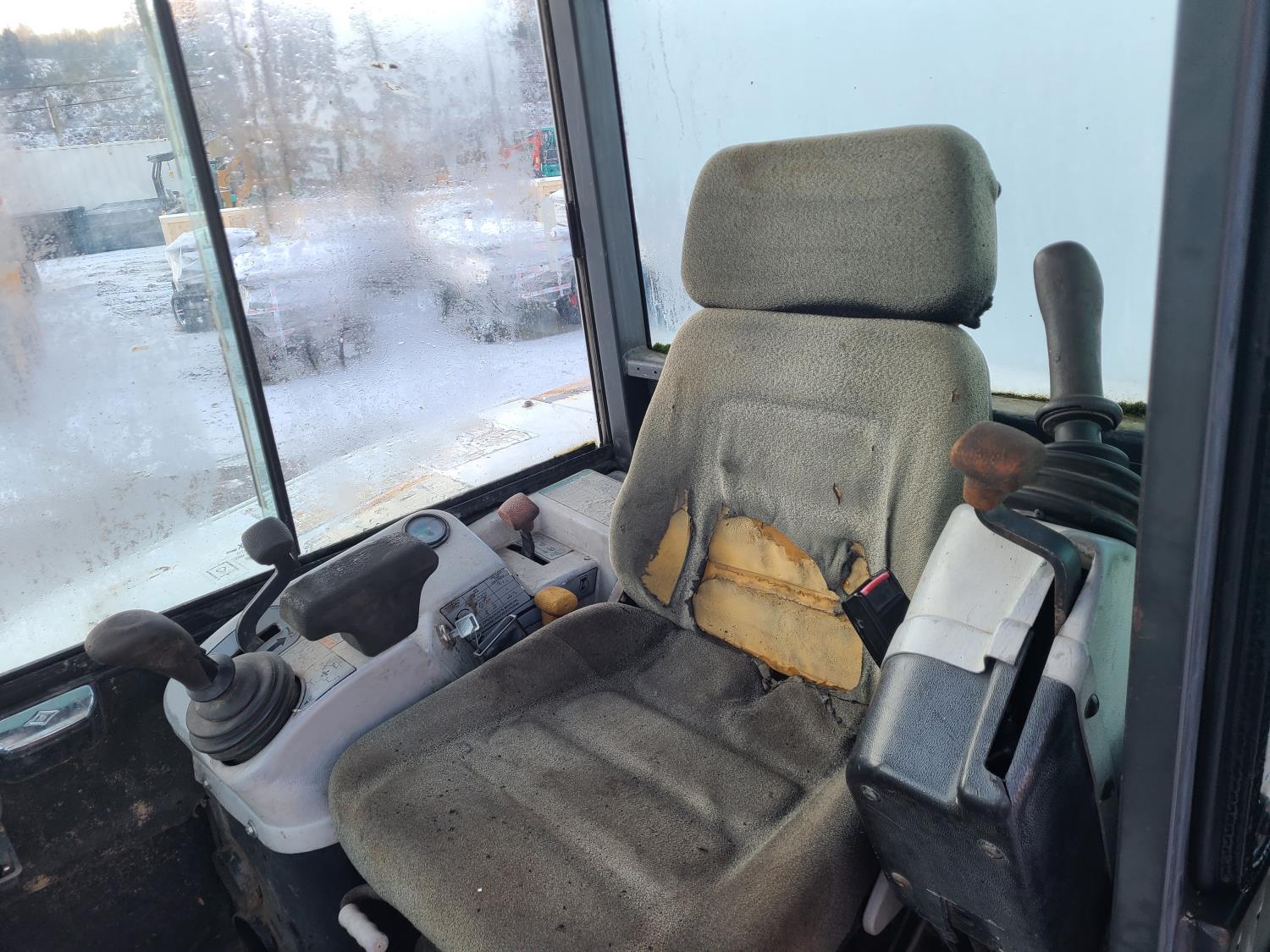 Enclosed cab, pilot controls, Q/C coupler, hydraulic thumb, 1 auxiliary hydraulics, swing boom, backfill blade, 12 inch trenching bucket, 36" clean up bucket, rubber tracks, 12 inch track pads
