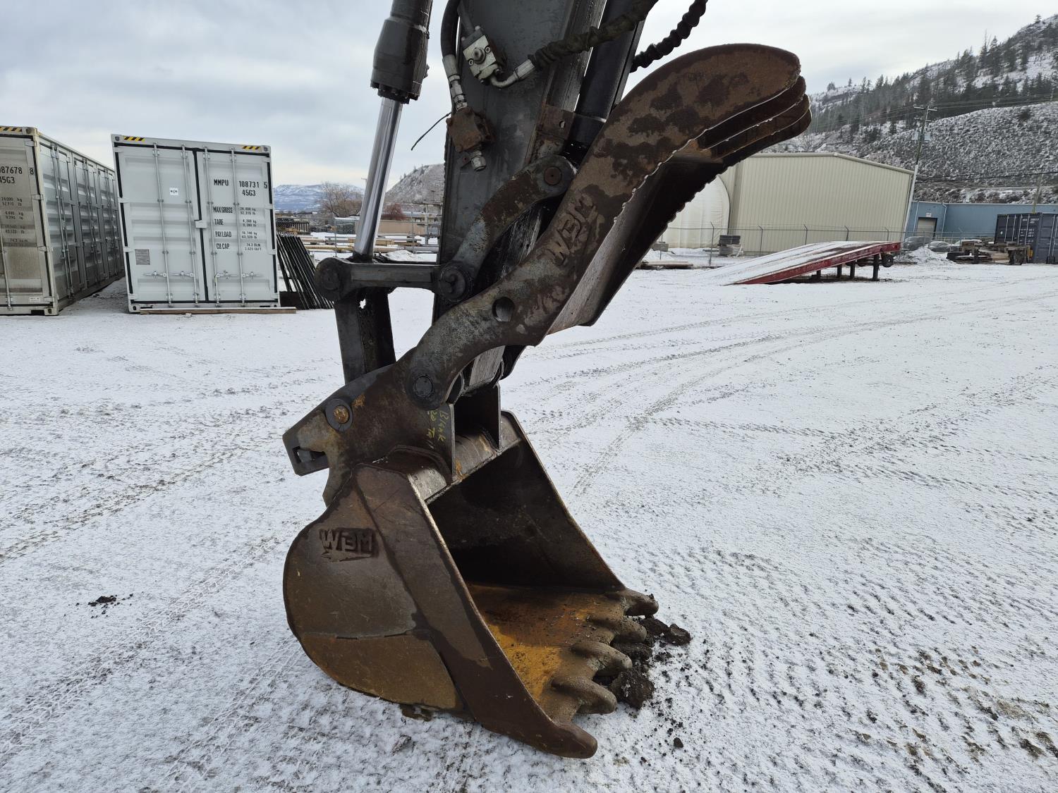 Enclosed cab, control pattern change, pilot controls, 34 inch dig bucket, Q/C coupler, 1 auxiliary hydraulics, Progressive link hydraulic thumb, 24 inch track pads, triple grousers