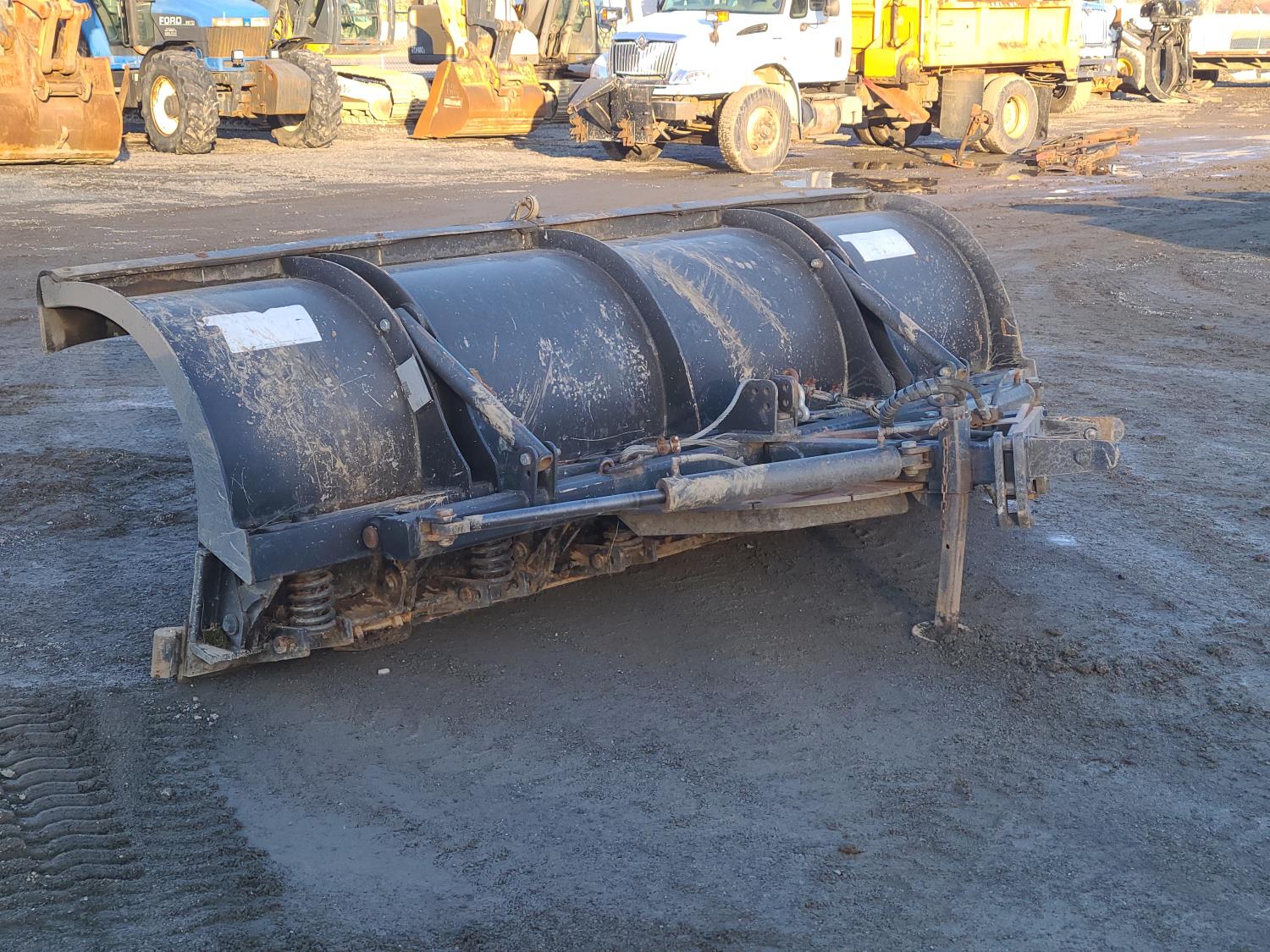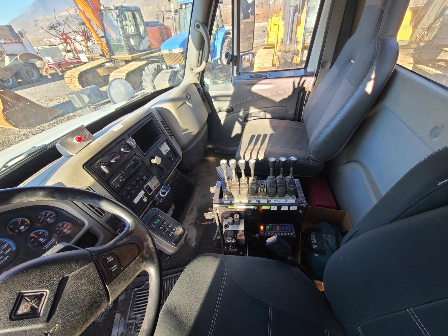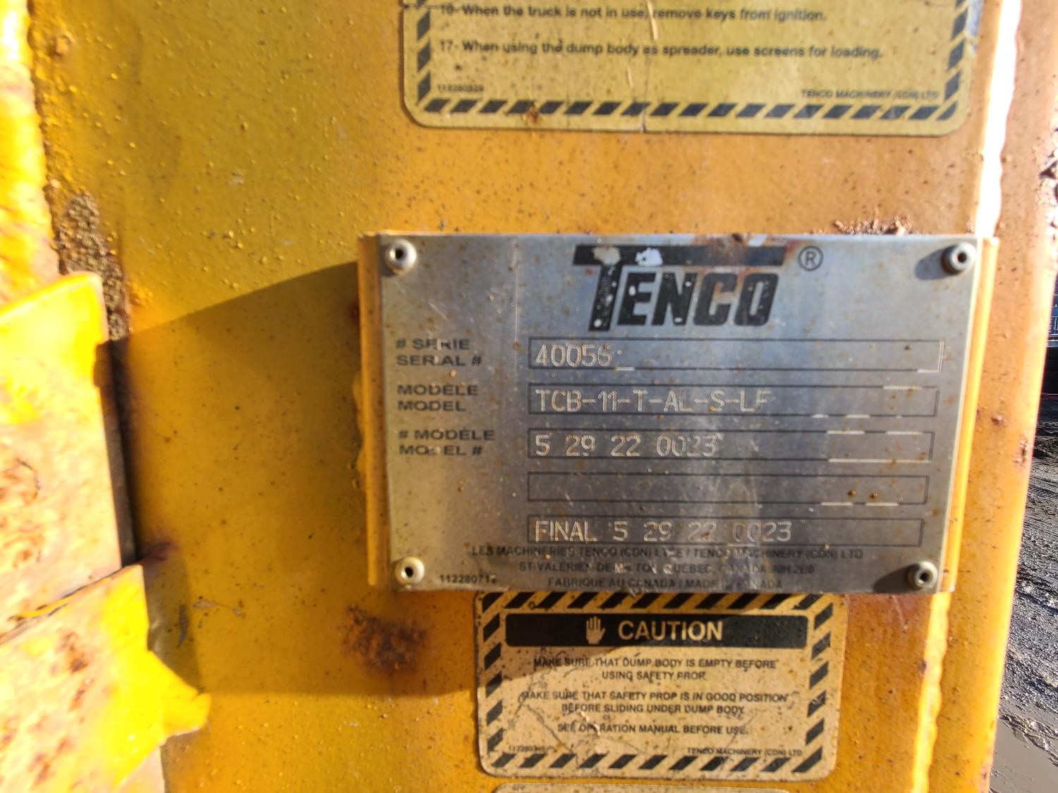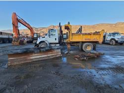 MaxxForce 7.6 L 6 cylinder diesel engine, Allison automatic transmission, A/C, stereo, 11 ft Tenco dump body with left side conveyor and front left spreader, 10 ft underbody blade, air tail gate, roll tarp, 11 ft Tenco reversable front snow plow, spring suspension, 14,000 lb front axle, 22,000 lb rear axles, diff lock, 11R-22.5 tires