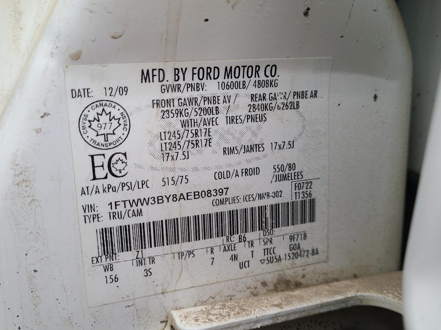 - 1FTWW3BY8AEB08397