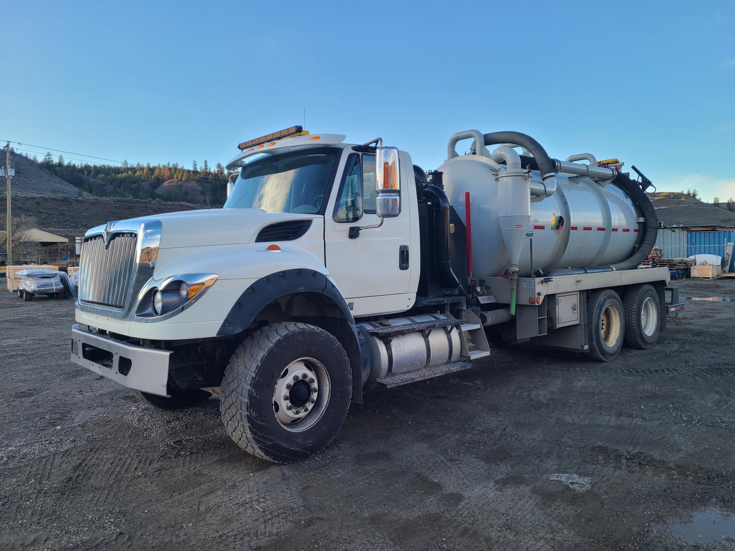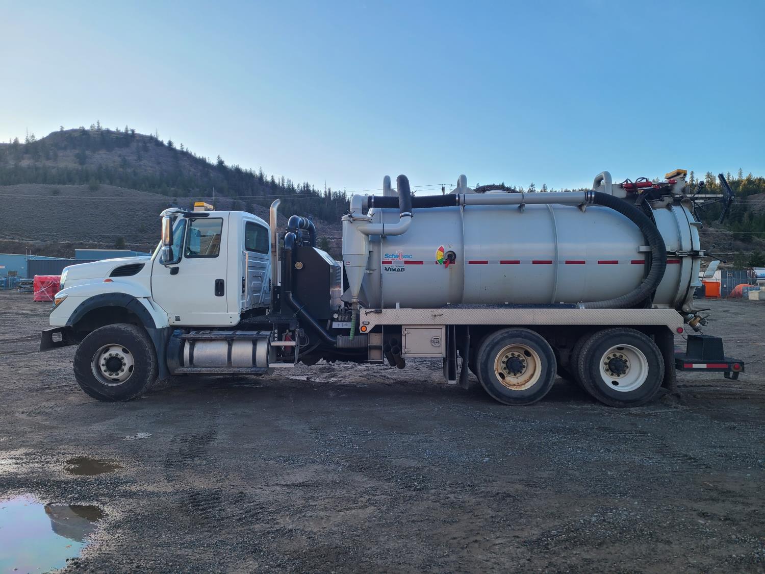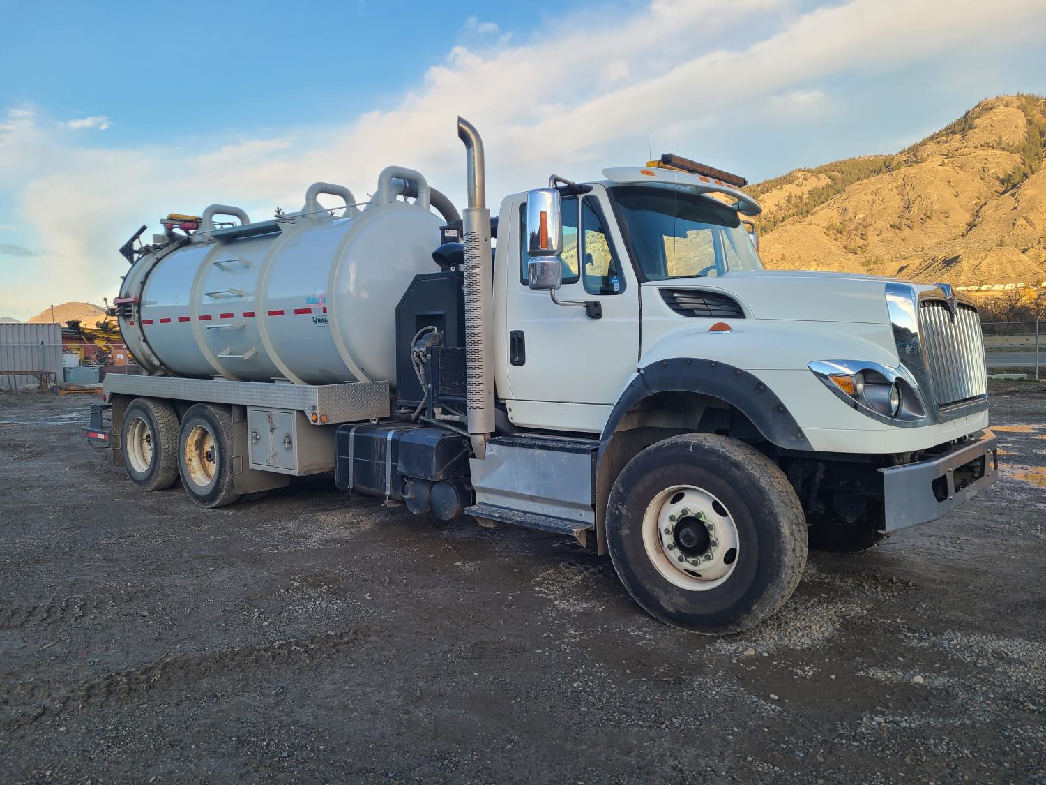 Navistar N13 12.4 L diesel engine, DEF required, engine heater, 6 speed auto shift transmission, A/C, cruise control, air ride driver seat, radio, beacons, Hibon Pump/ Blower PTO pump, Shellevac HVT 2800 10600 liter 44w steel tank, air ride suspension, 20,000 lb front axle, 23,000 lb rear axles, Unit used for removing and transferring waste water and storm water, 425/65R-22.5 front tires, 11R-24.5 rear tires