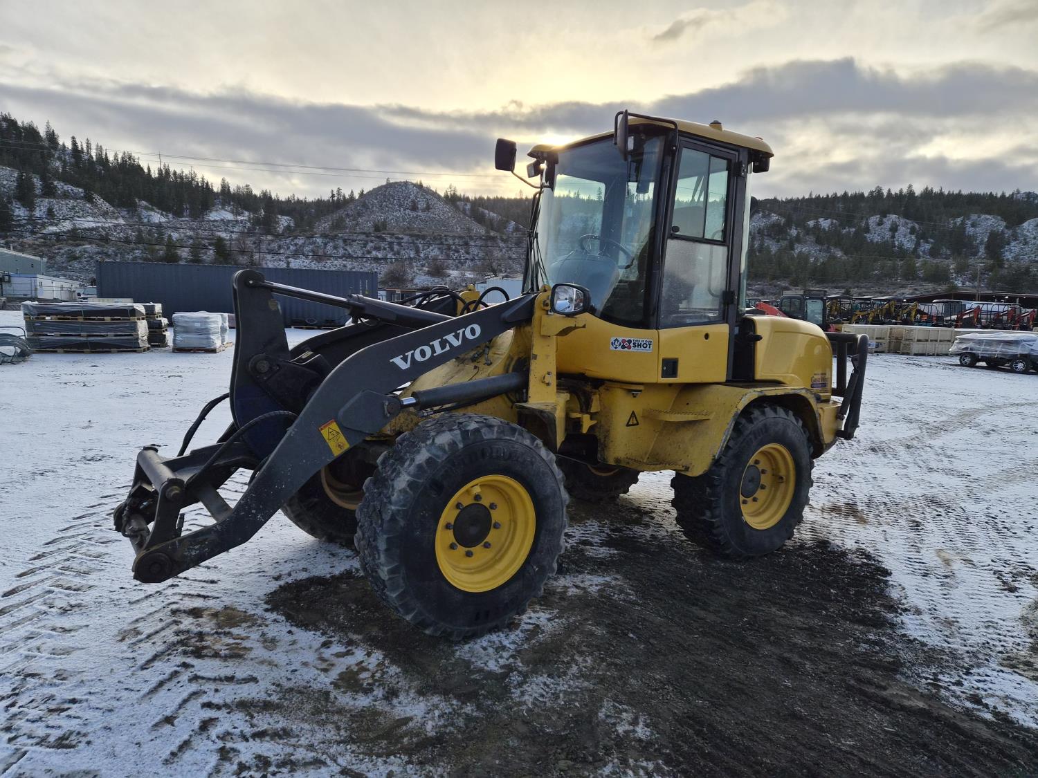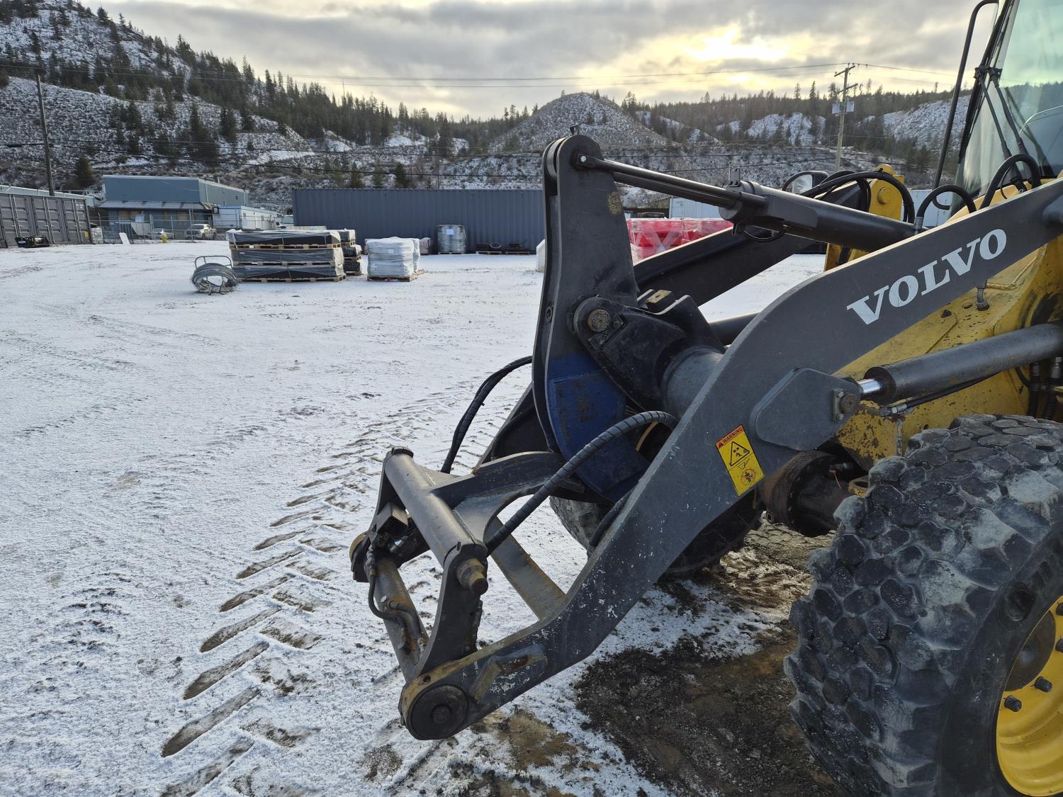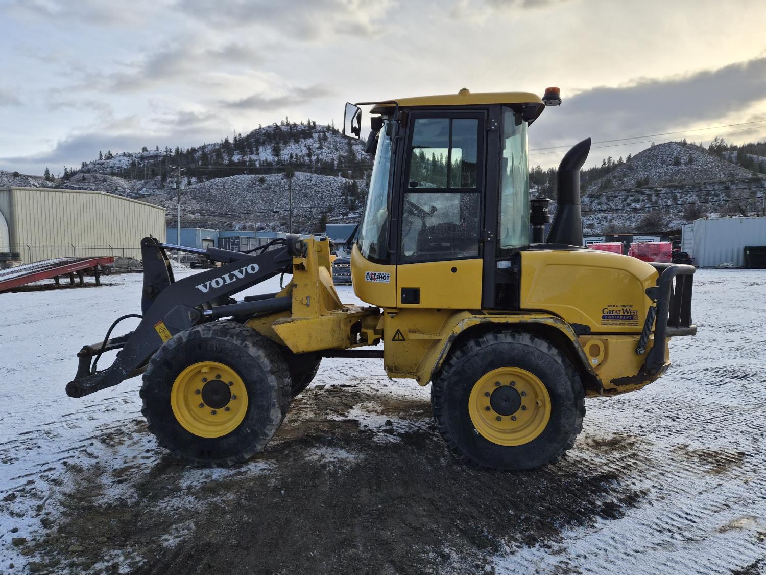 Enclosed cab, A/C, DEF required, hydro transmission, Volvo 3.3 litre engine, hydraulic Q/C coupler, 1 auxiliary hydraulics, 365/80/R20 tires