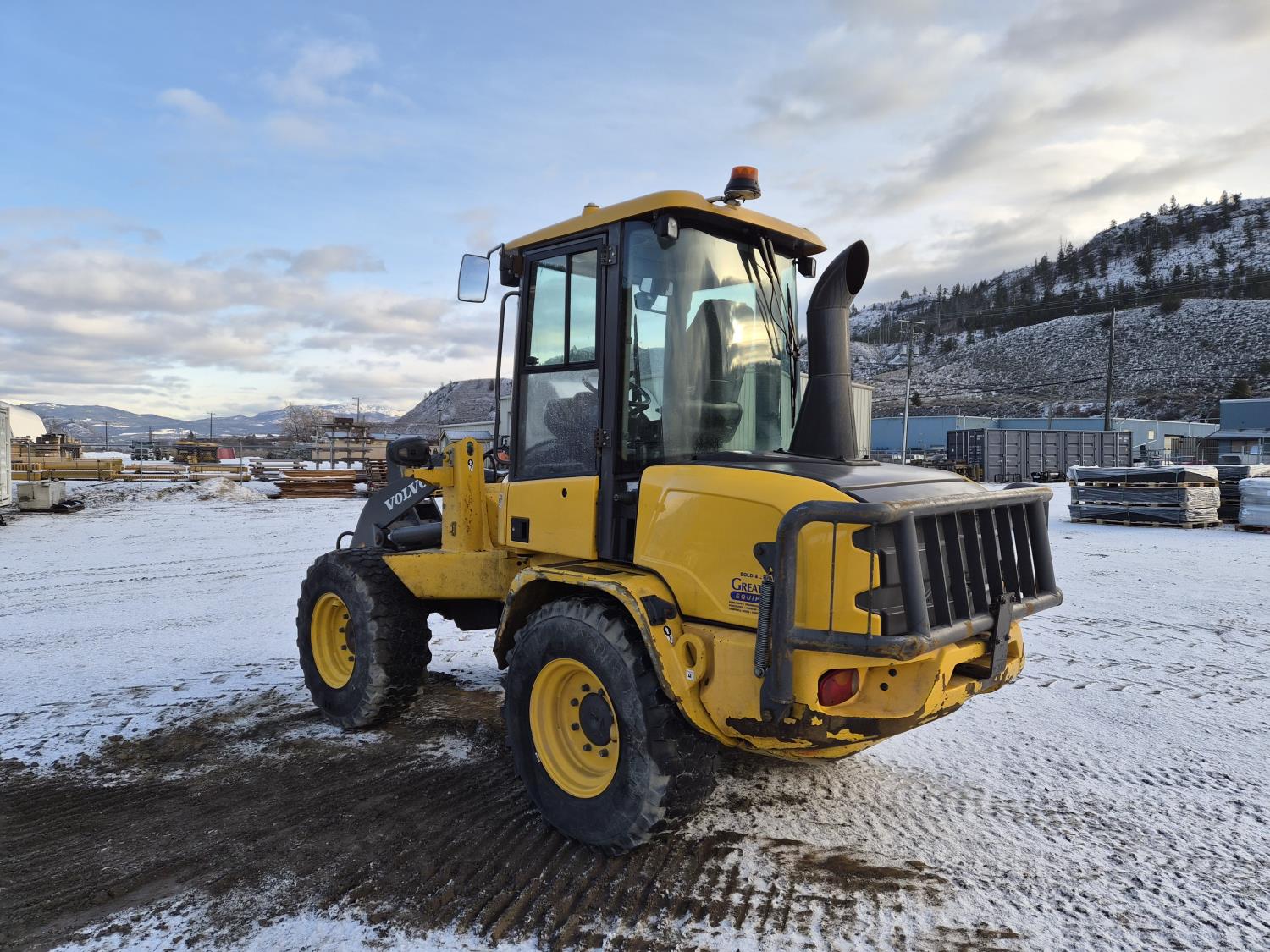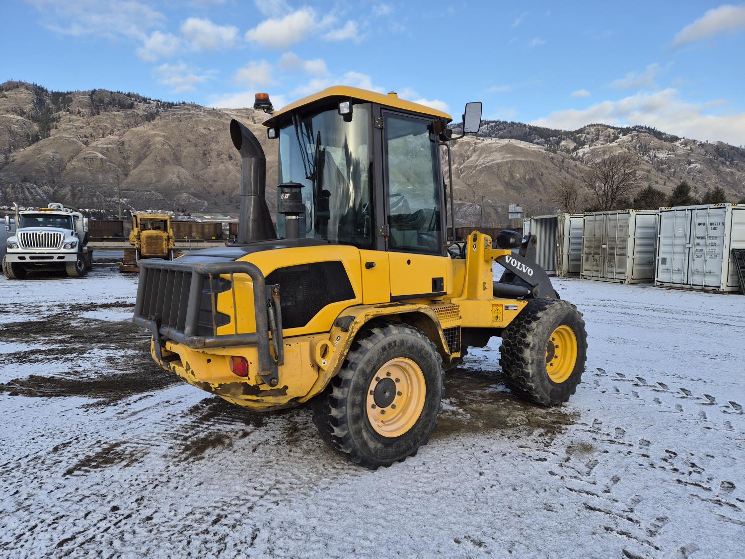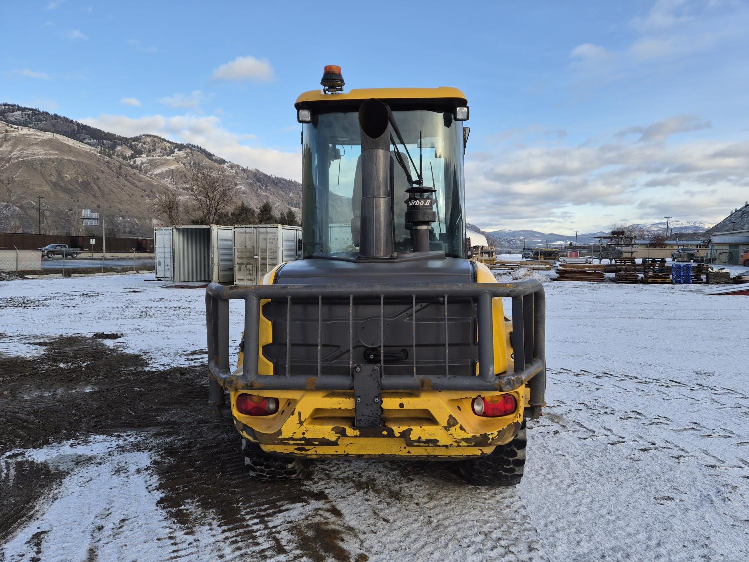 Enclosed cab, A/C, DEF required, hydro transmission, Volvo 3.3 litre engine, hydraulic Q/C coupler, 1 auxiliary hydraulics, 365/80/R20 tires