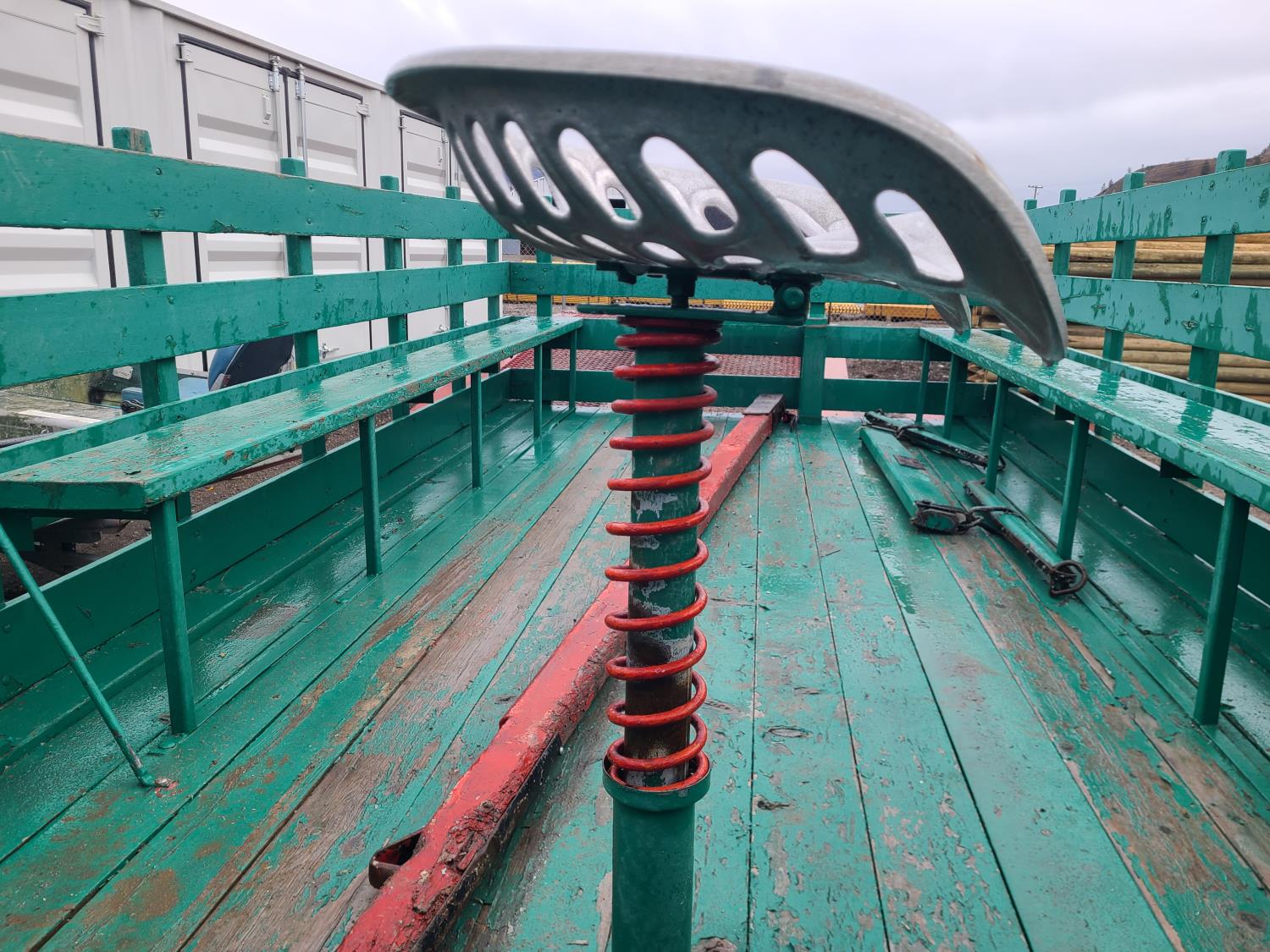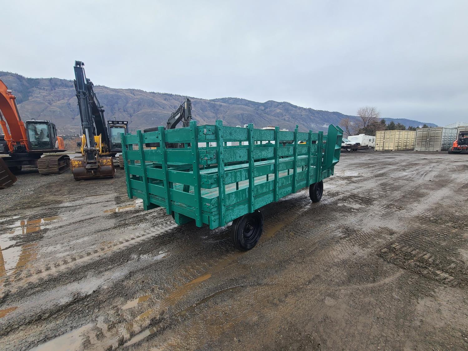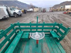 Wagon was in use at Calgary heritage park for 20 years. 22 passenger, truck or tractor drawn. Flip out steps and spring ride driver seat. 14.5 ft long and 7 ft wide, greaseable bearings and king pin.