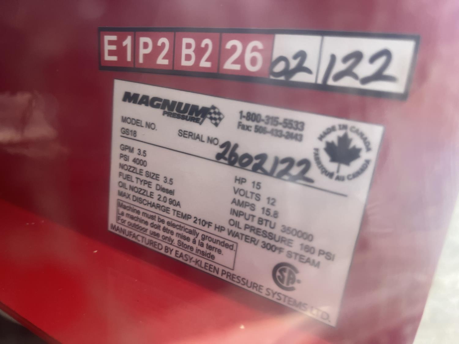 79 Magnum EKS-GS18 4000 Series Gold Diesel Fired Hot Water Pressure Washer (Unused)