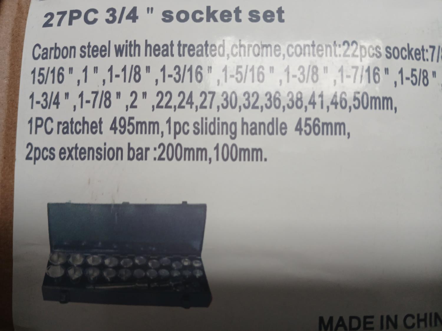 (SAE) 3/4 Inch Drive Socket Set (Unused)