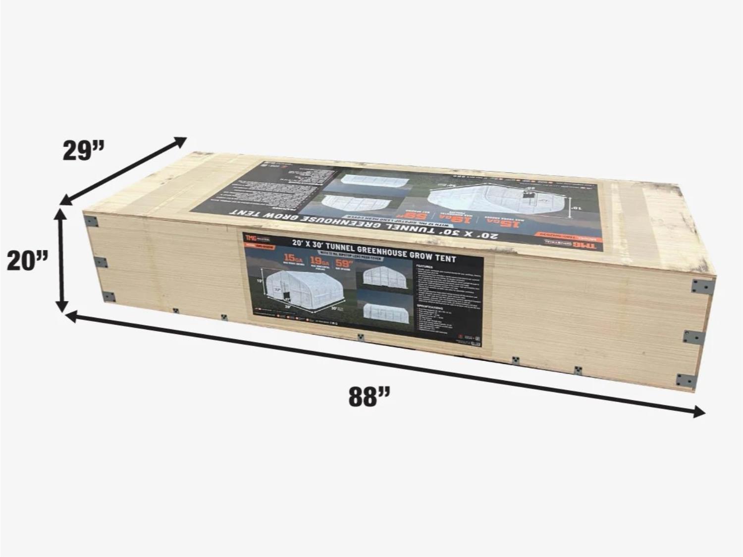 12 mm ripstop leno mesh cover, cold frame, roll-up windows, peak ceiling roof. Shipping dimension: 88” x 29” x 20” (L x W x H) 755 lb