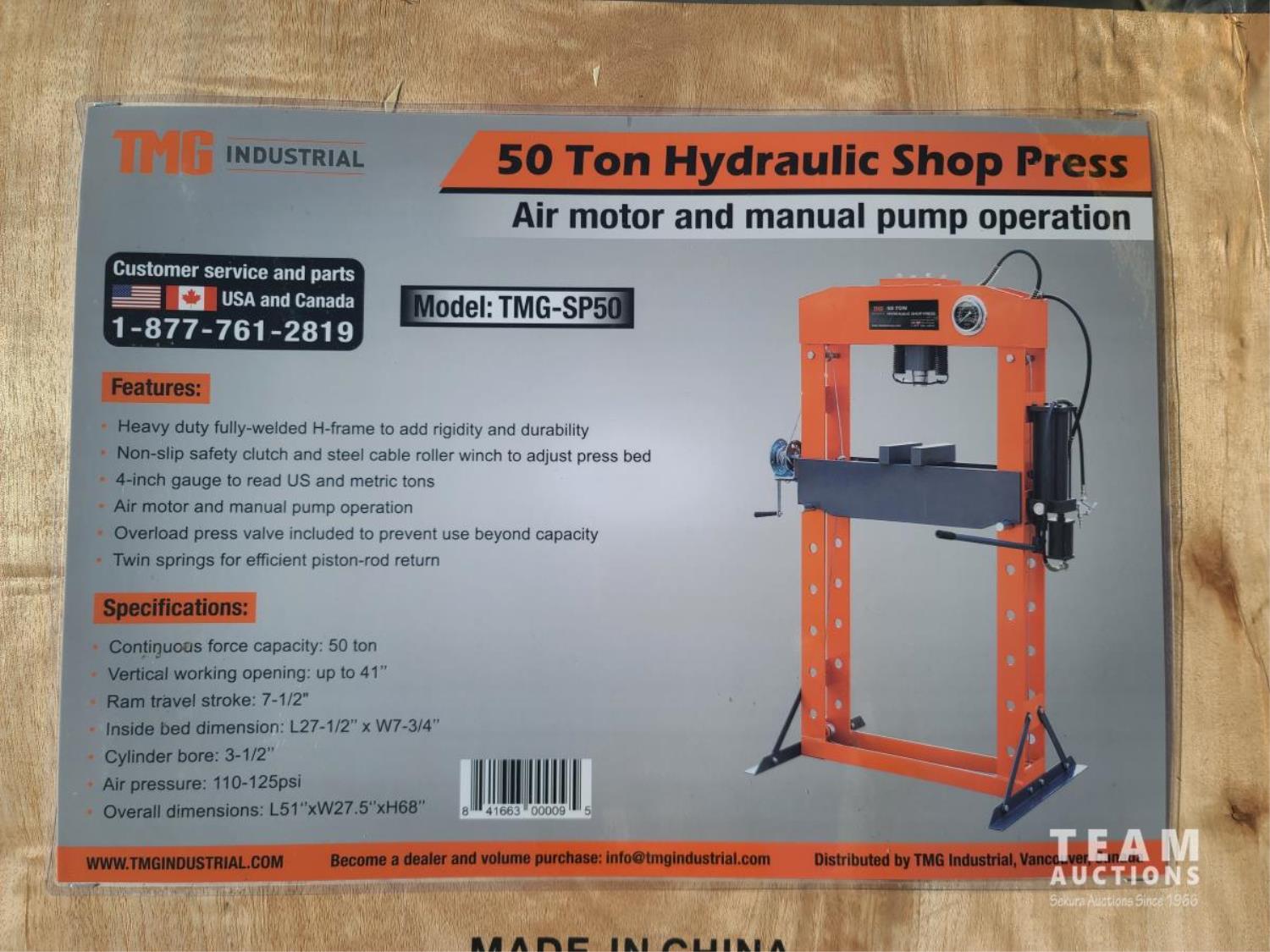 91 StanForge SP50 50 Ton Capacity Hydraulic Shop Press (Unused)
