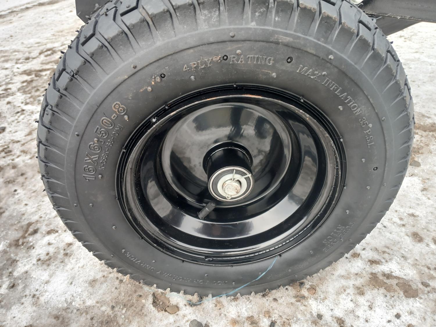 4.7 Ft length X 2.4 Ft width in size, 2 inch ball hitch, tow weight 3,500 lb. 16 X 6.50-8. 4 ply tires