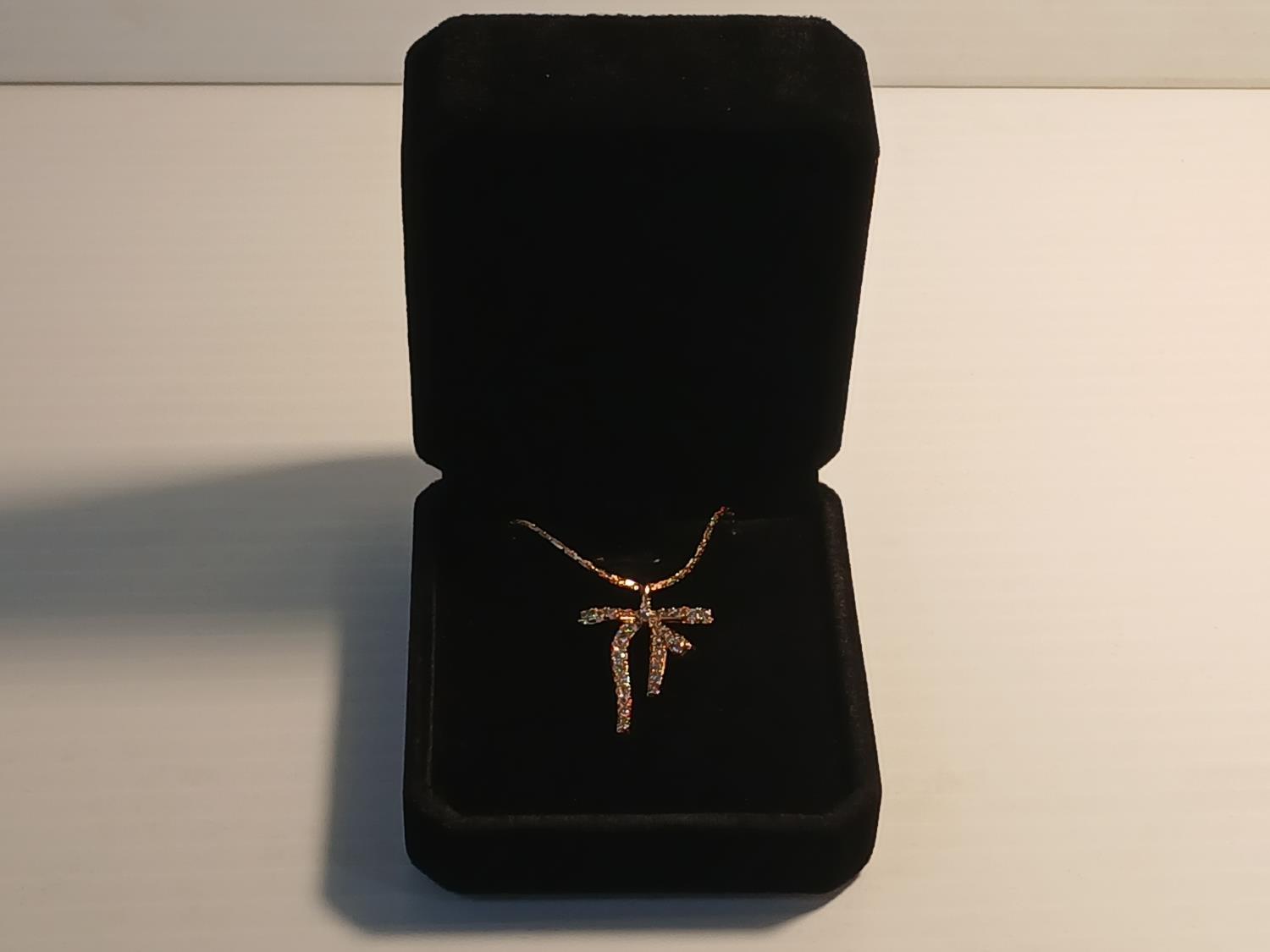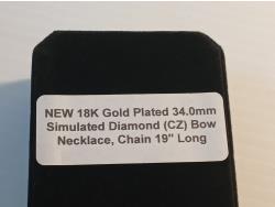 523 18K Gold Plated Simulated Diamond (CZ) Bow Necklace (Unused)