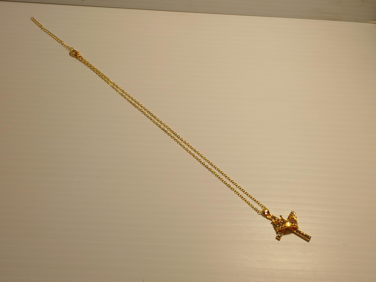 544 Gold Tone Cross and Crown Necklace (Unused)