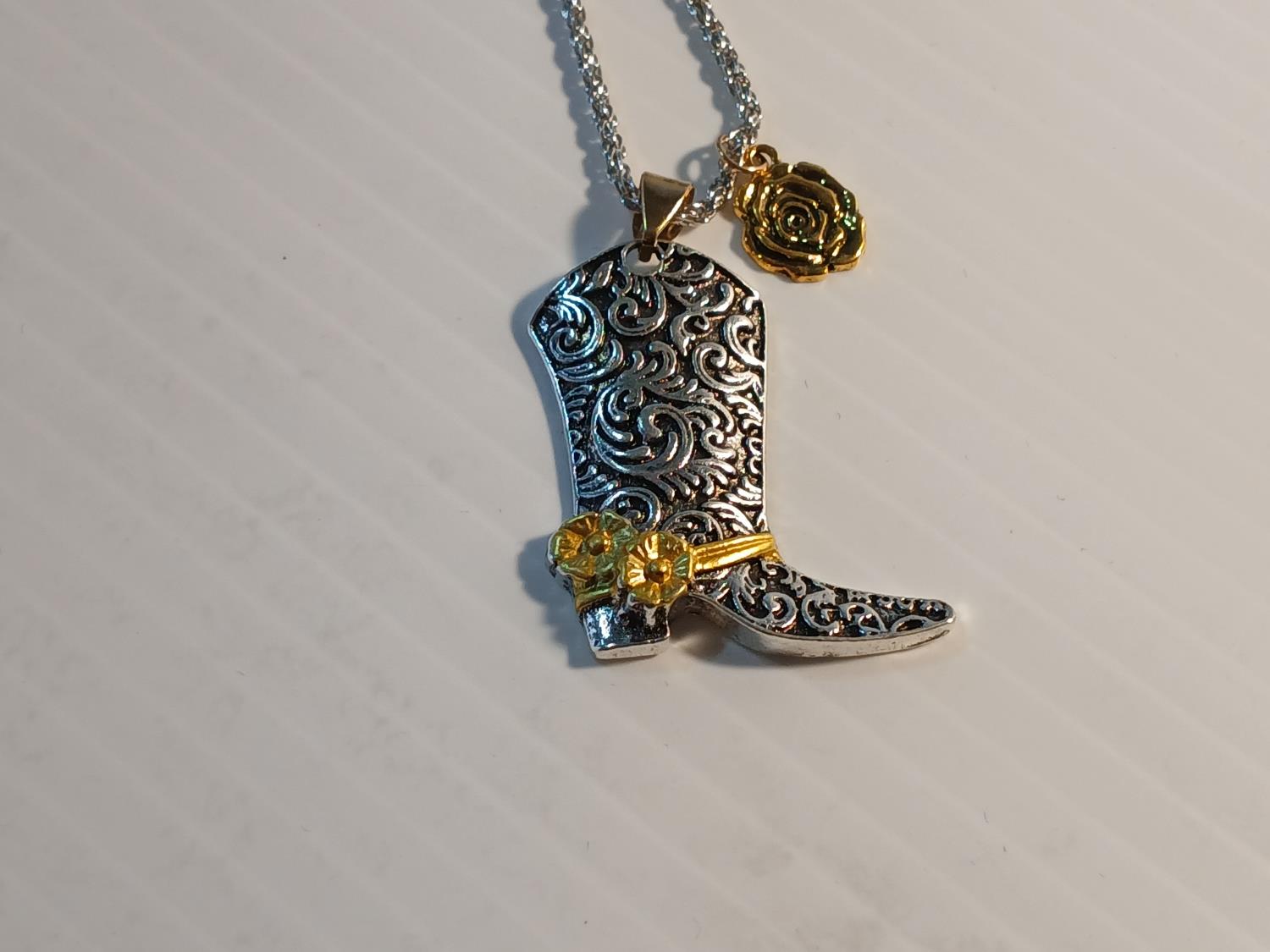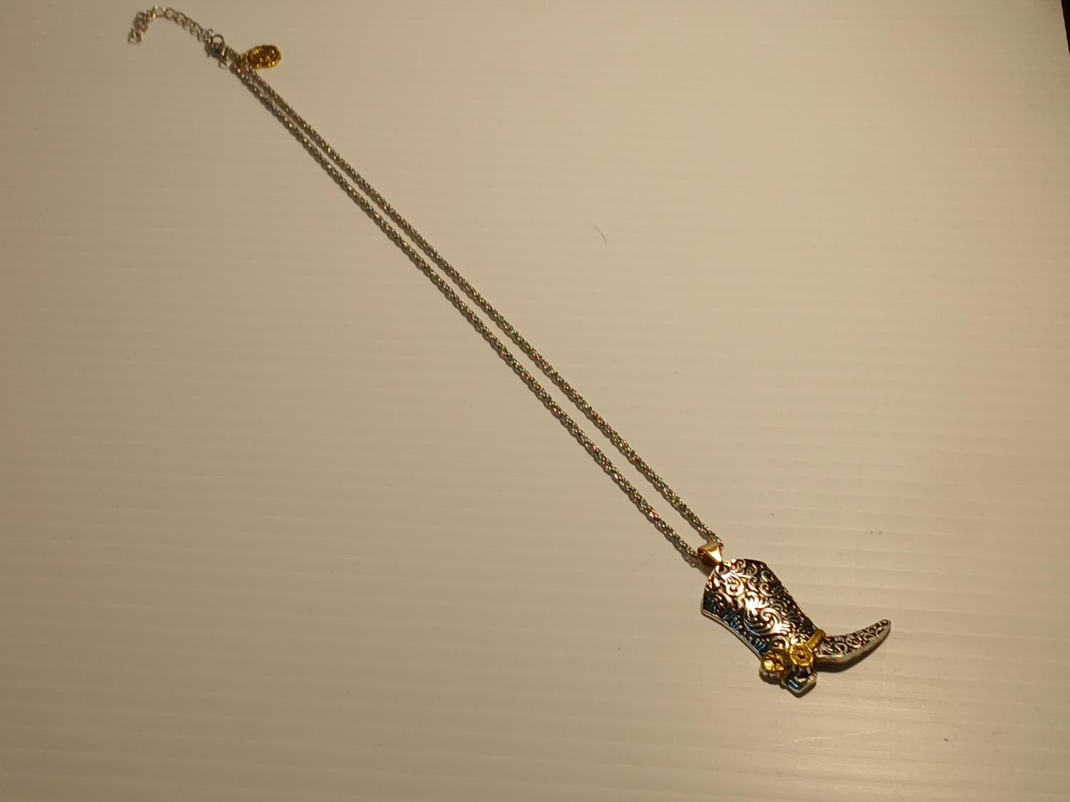 539 Silver and Gold Tone Western Boot Neclace (Unused)