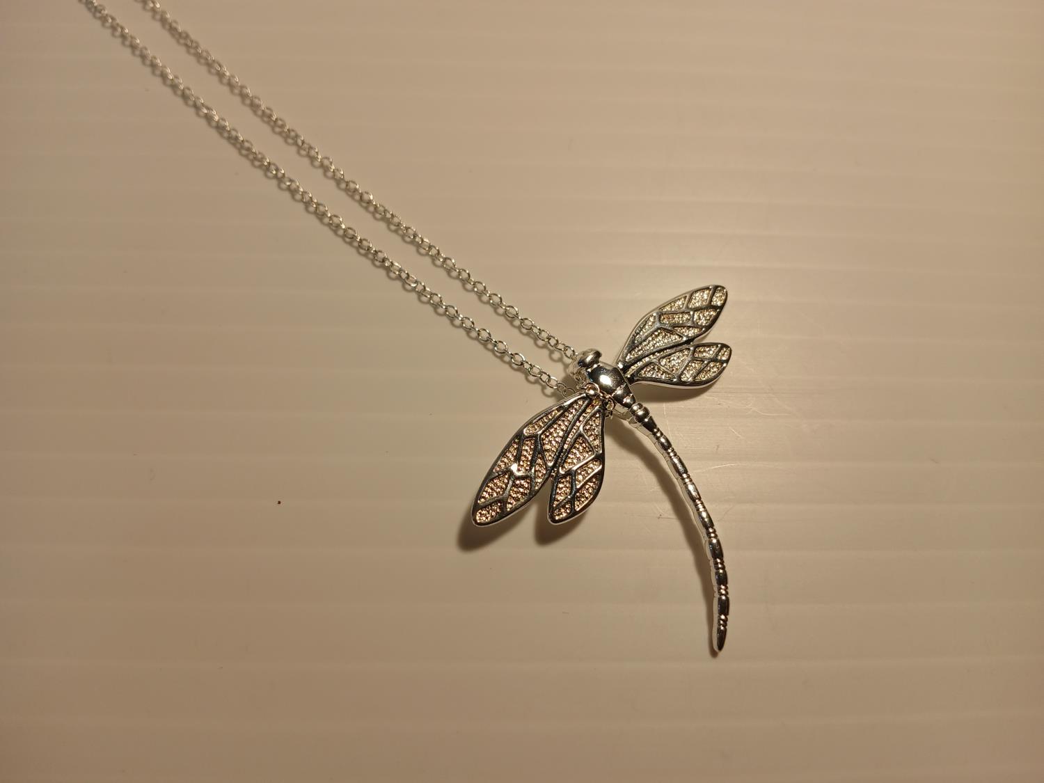 Silver Tone "Dragon Fly" Necklace (Unused)